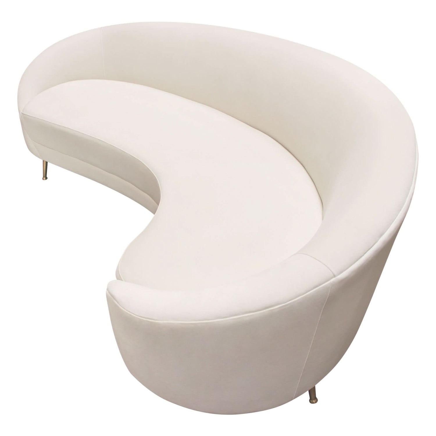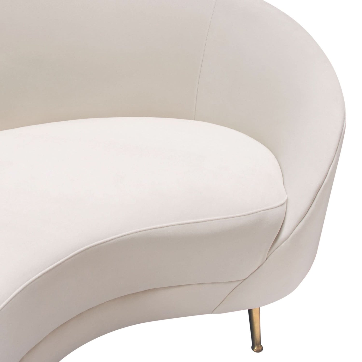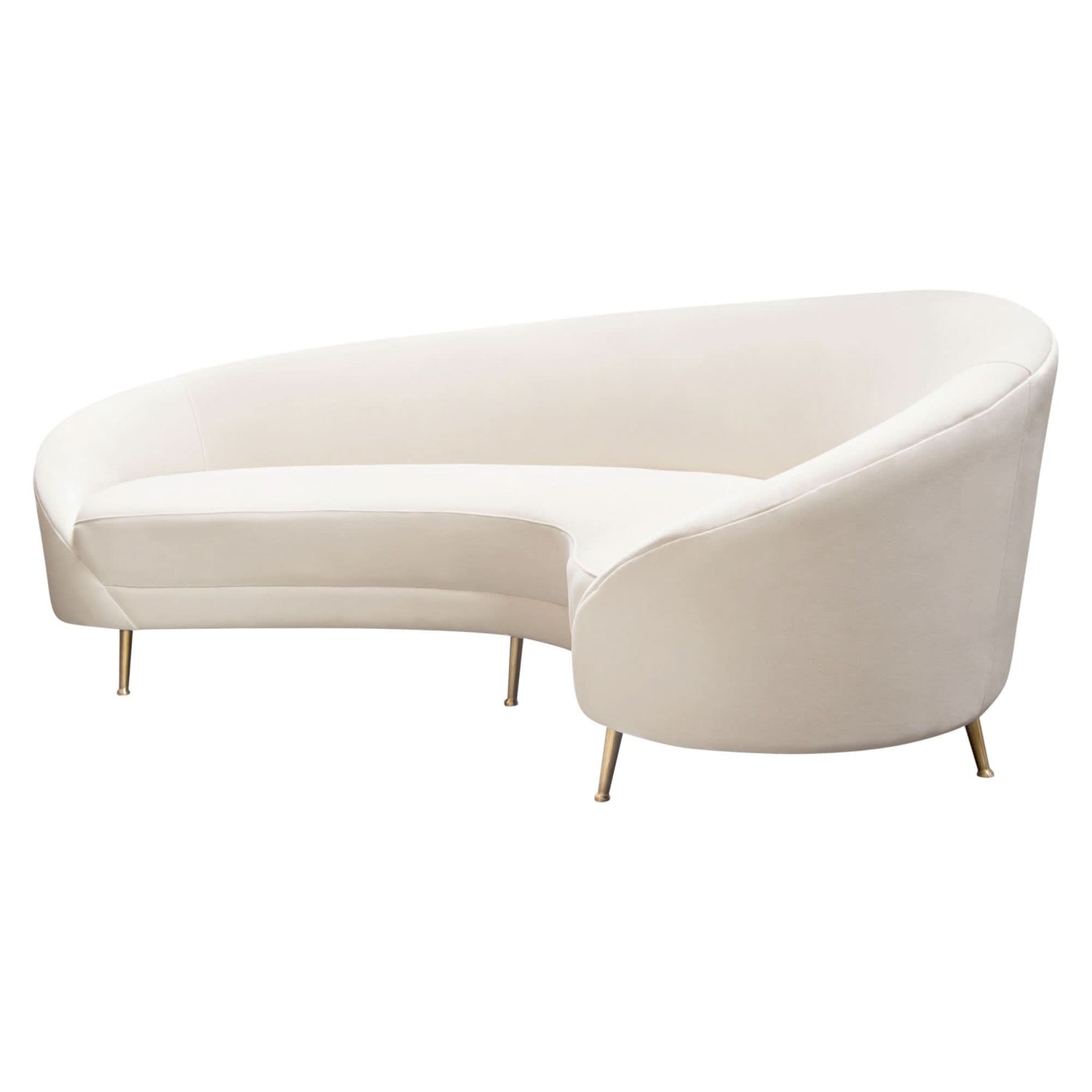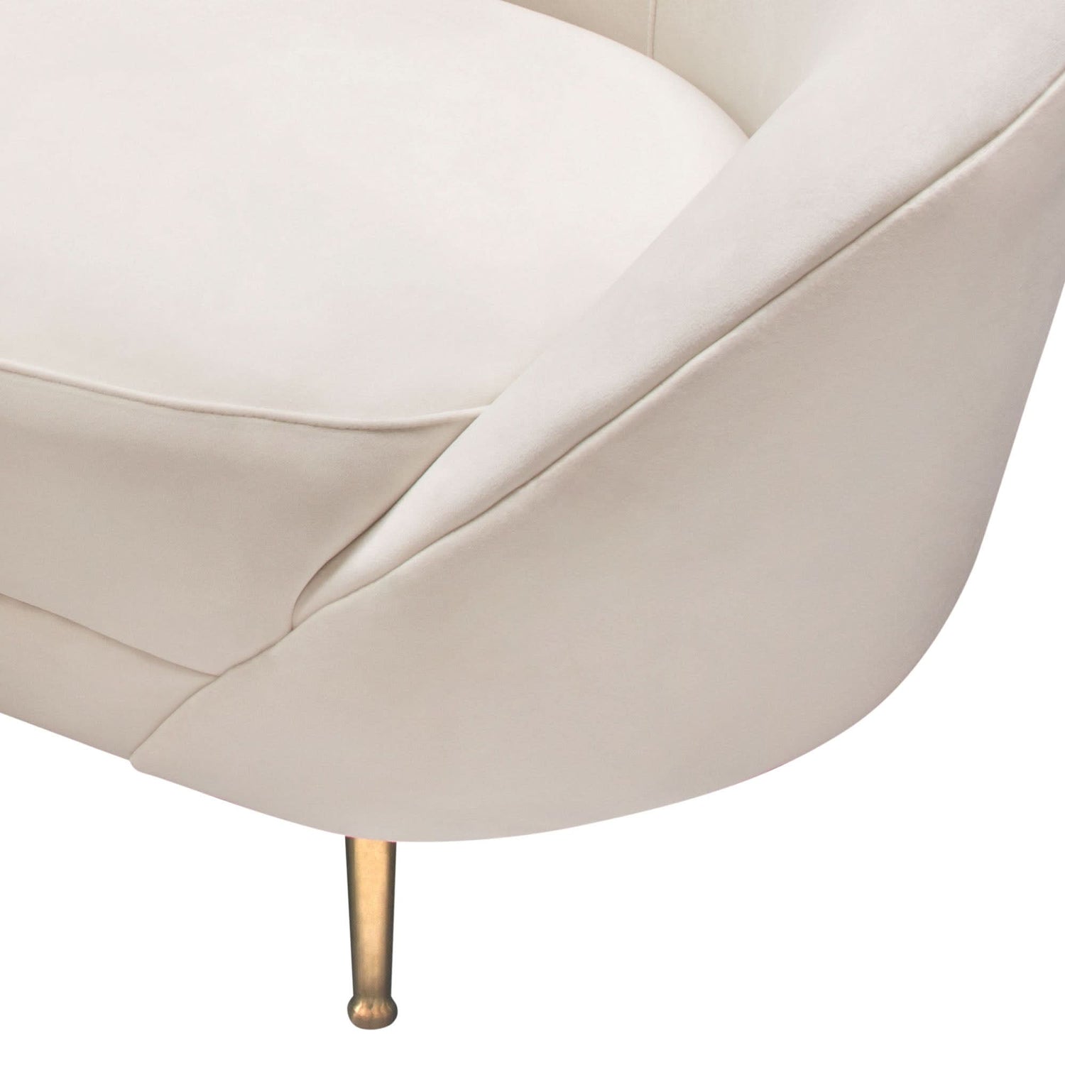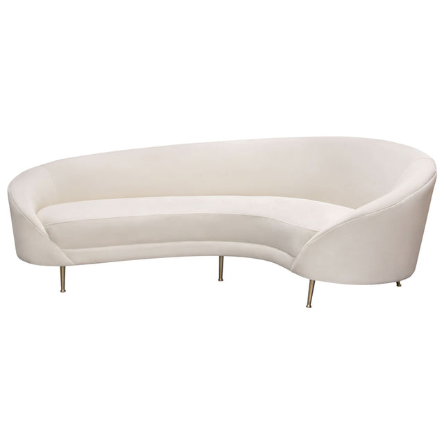 The Celine Curved Sofa by Diamond Sofa offers a true Glam, Sophisticated look for your home décor. With its sensual curved silhouette, sloping arms and angled brushed gold metal legs, The Celine Sofa will become the focal point of any space. Covered in a plush Light Cream or Blush Pink velvet, its presence is undeniable.