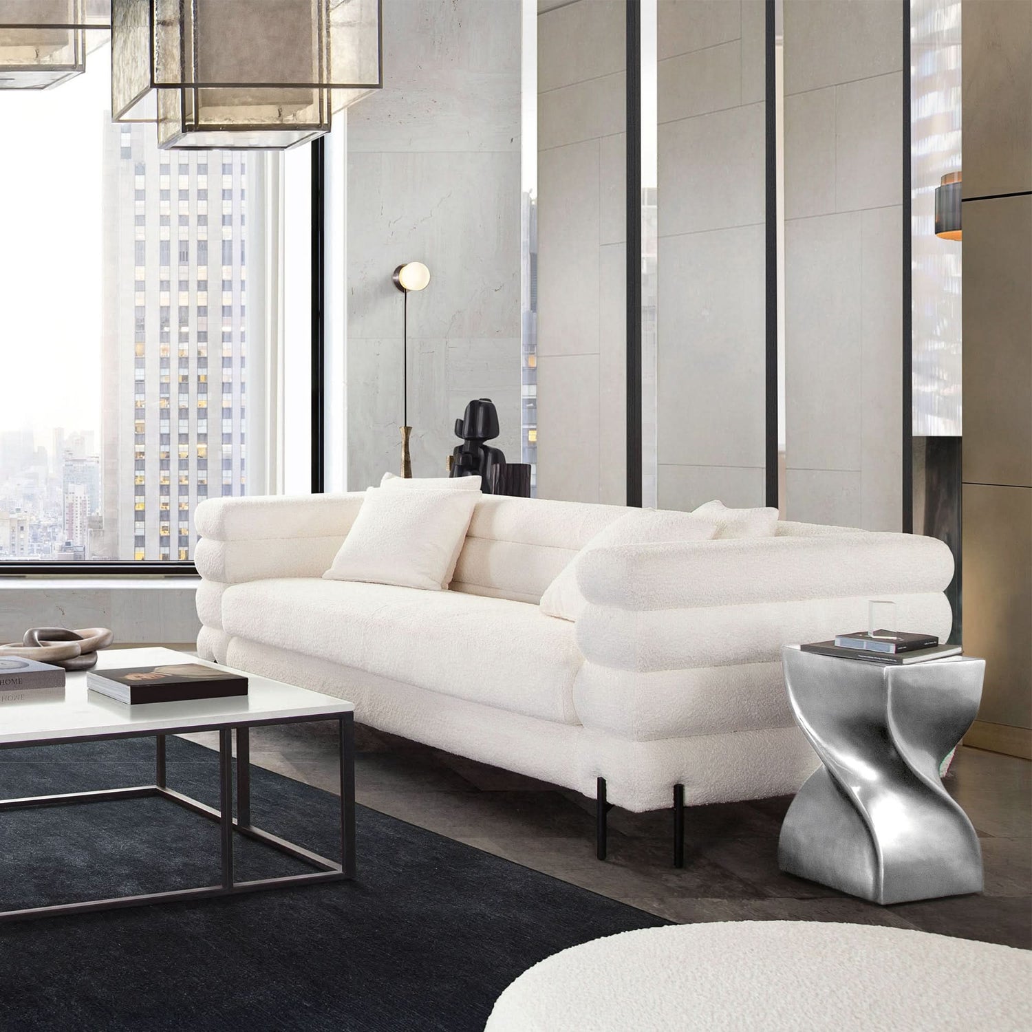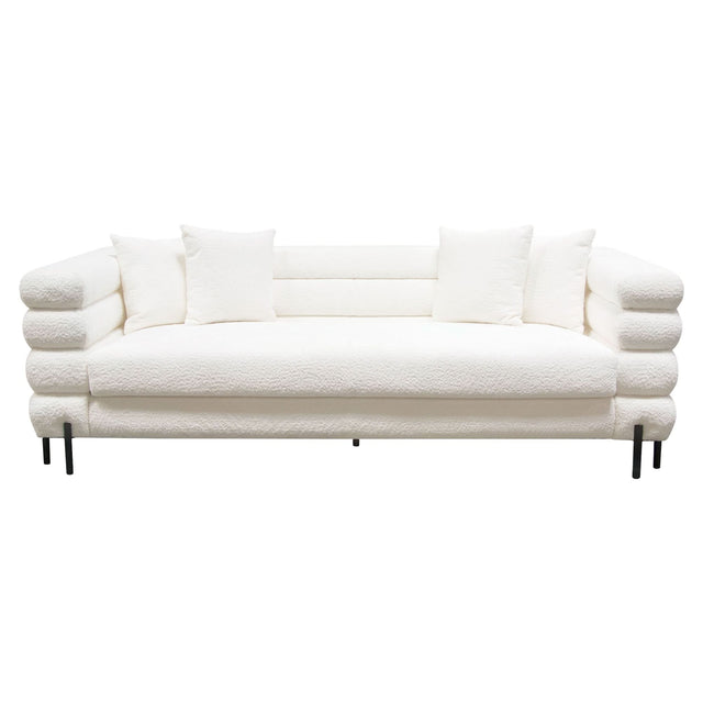 The Vox Collection by Diamond Sofa offers a tufted, stack design lining the inside and out of this collection. The generously proportioned collection allows you to really stretch out and enjoy the comforts that the Vox Collection has to offer. Available in White Faux Shearling Polyester fabric w/ Black Powder Coat Metal Legs. Collection includes: Sofa, Chair