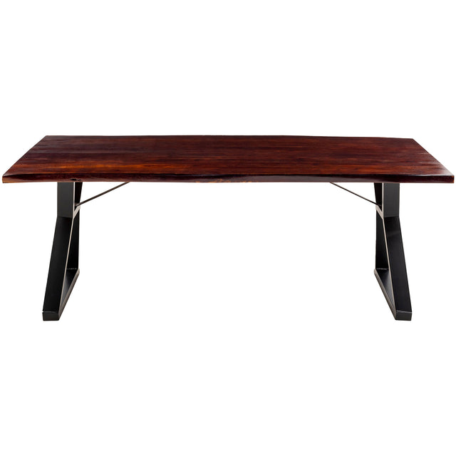 The Stavanger Dining Table brings a stunning blend of natural elegance and modern design to your dining space. Featuring a beautifully grained brown acacia wood top and a sturdy black powder-coated iron base, this table is both stylish and durable, ideal for contemporary and rustic interiors alike.