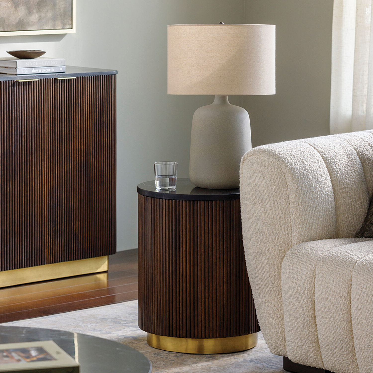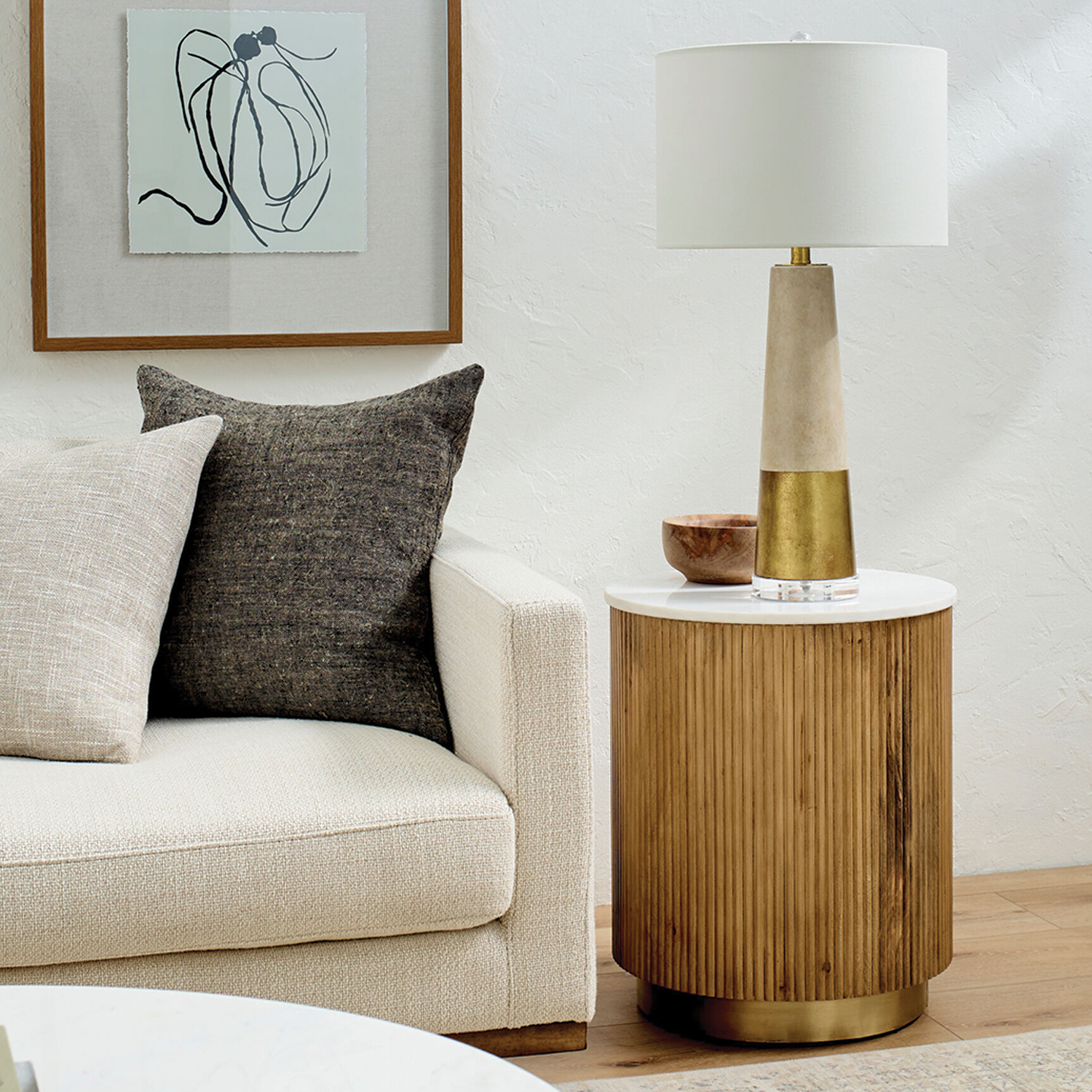 Elevate your living space with the Surya Nems End Table, a stunning combination of luxurious materials and artisanal craftsmanship. Featuring a smooth white marble top, a brass accent frame, and a sturdy mango wood base, this end table effortlessly blends modern elegance with rustic charm. Perfect for adding a touch of sophistication to your living room, bedroom, or reading nook.