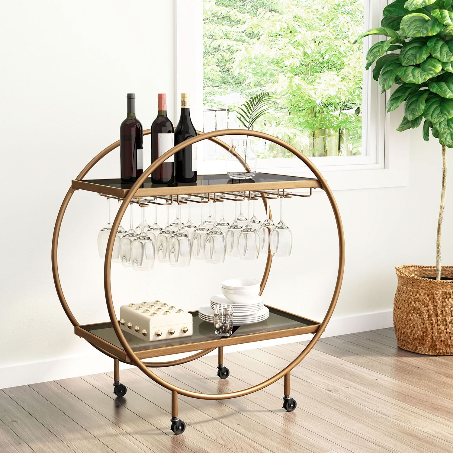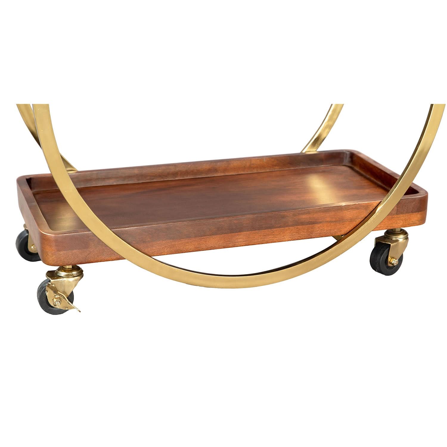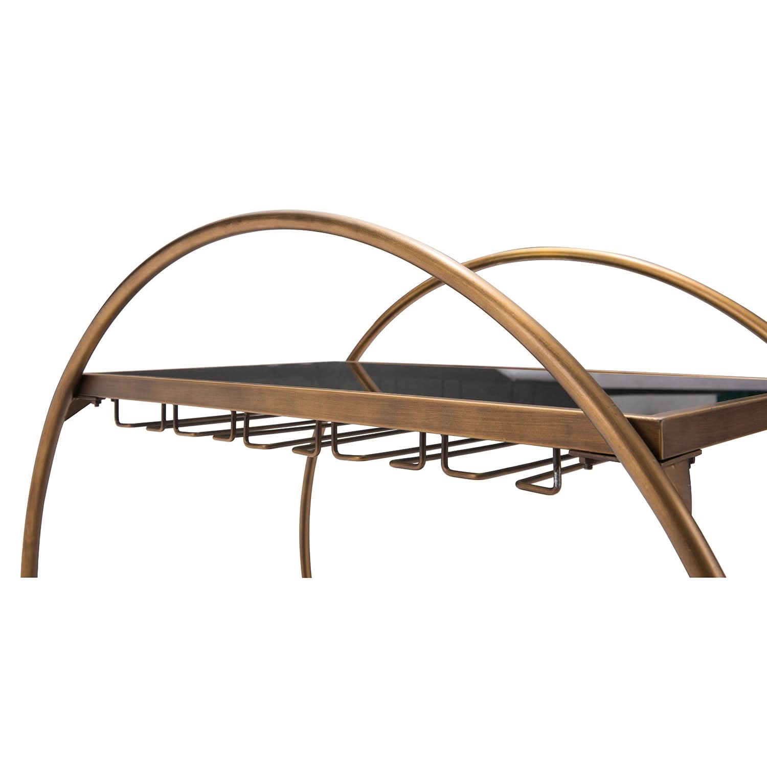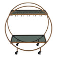 Elevate your entertaining with this stylish and functional Zuo Modern Arc Bar Cart. With its unique circular design, this bar cart features two glass shelves and smooth-rolling casters for easy mobility, making it a chic and practical addition to any space.