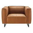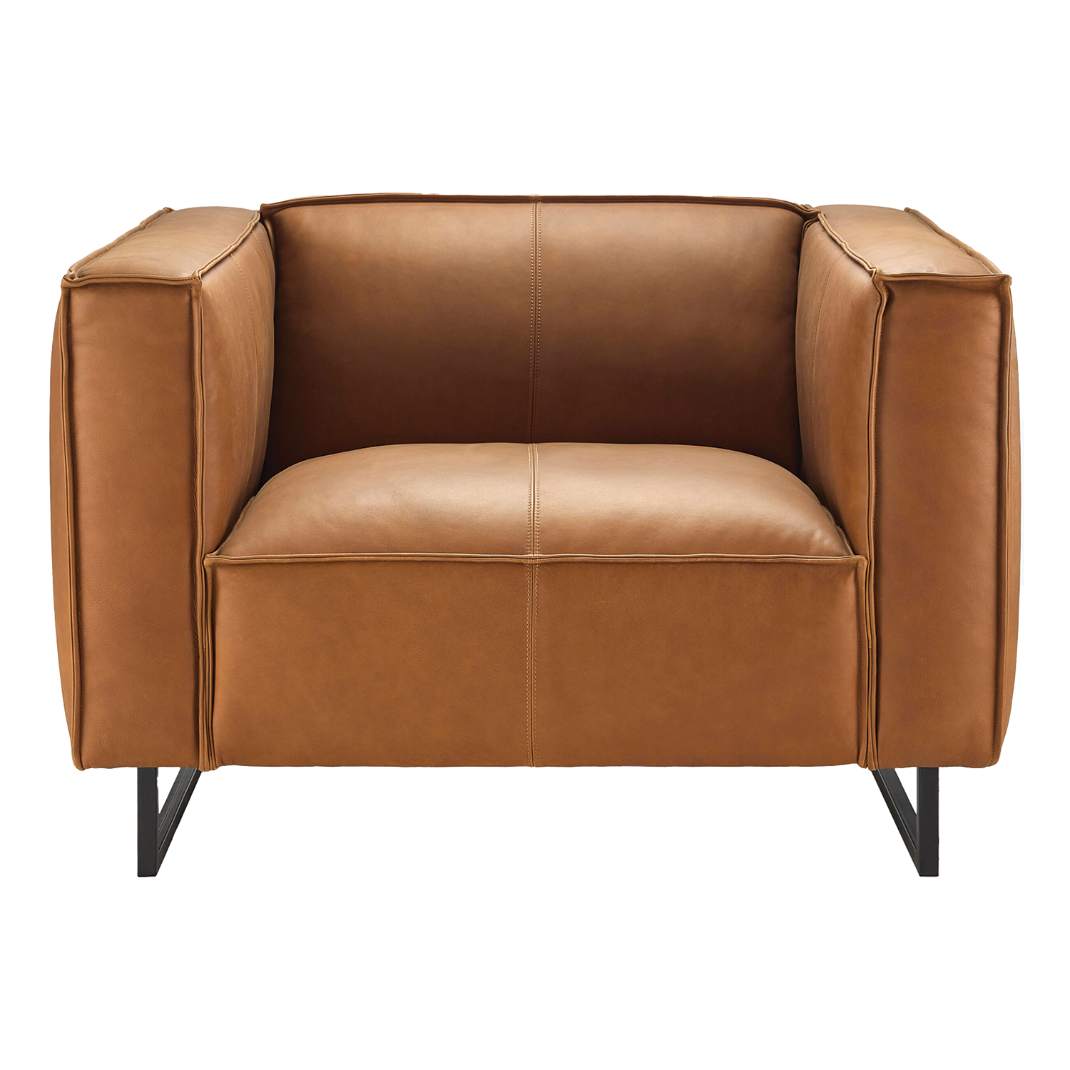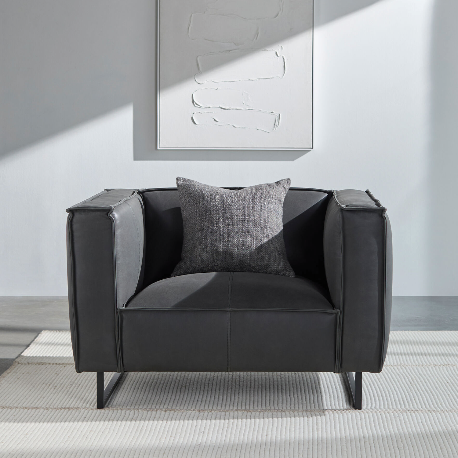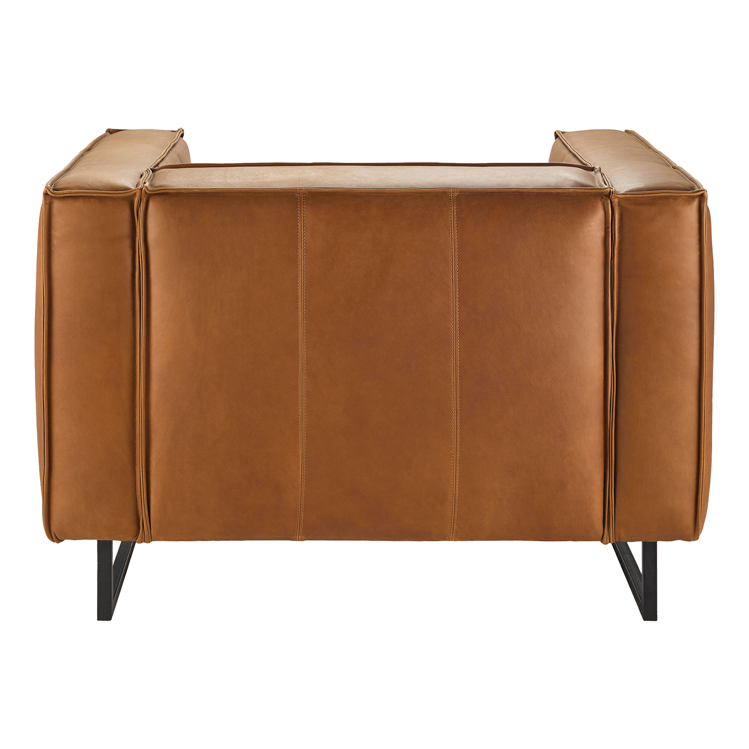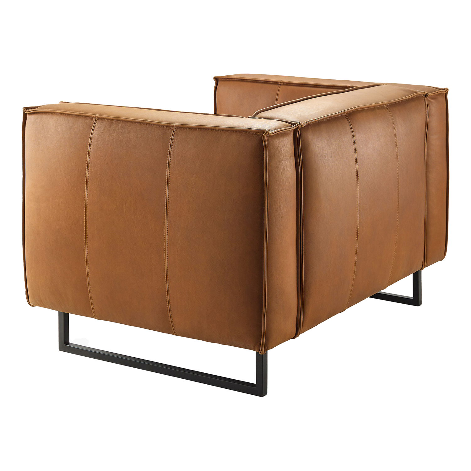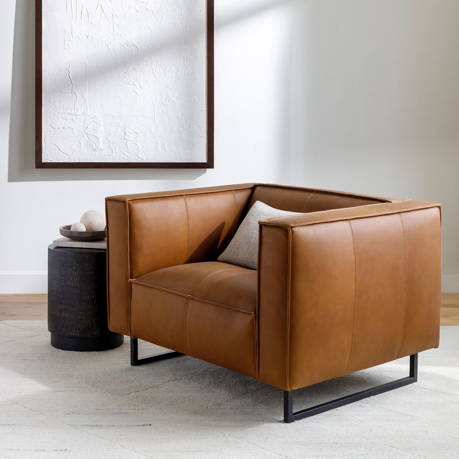 The Dylan Accent Chair is a stylish addition to any room, combining high-quality leather upholstery with a sleek black iron base. Its supportive cushion and spacious seat depth make it both comfortable and refined, perfect for adding a touch of sophistication to your living space.
