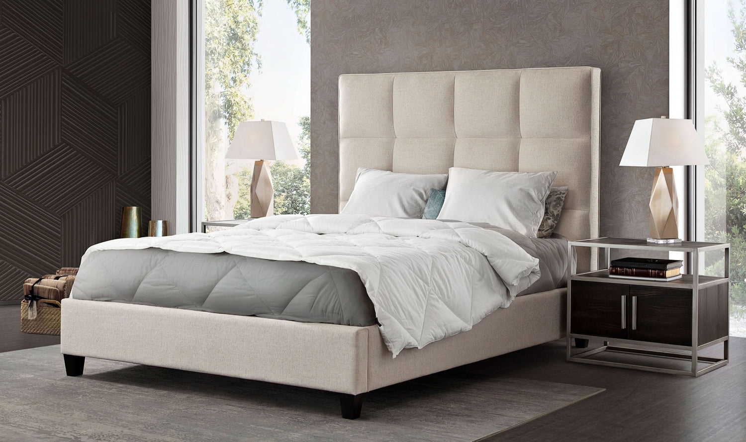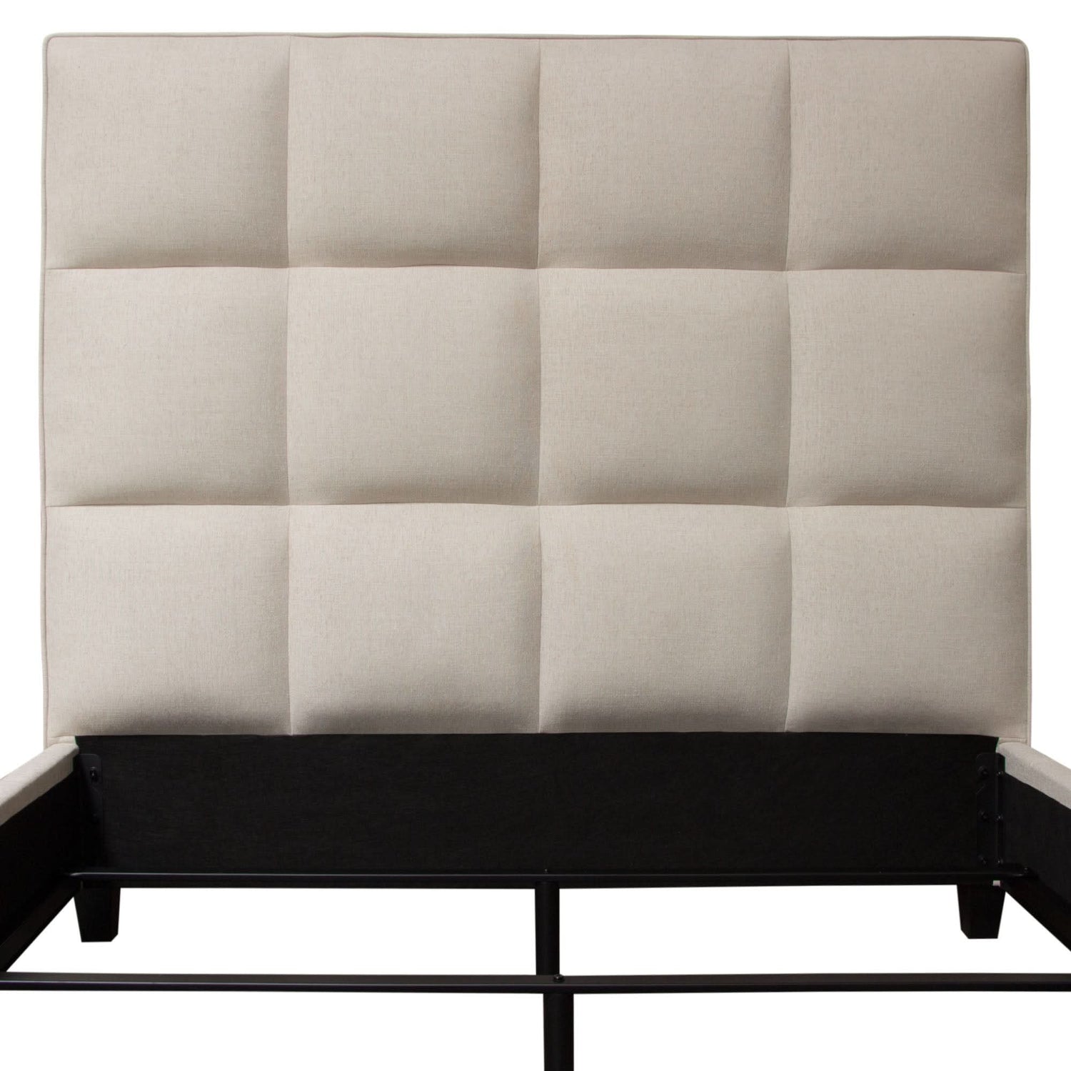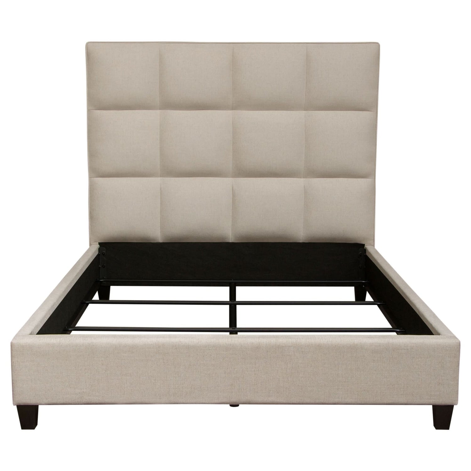 La cama Devon de Diamond Sofa fue diseñada cuidadosamente para ser el punto de apoyo de su dormitorio y brindar una base elegante para la decoración de su habitación. Terminada en una exquisita tela de poliéster color arena, la cama Devon cuenta con una cabecera con mechones de rejilla de 60 pulgadas de alto y un pie de cama de perfil bajo. Los listones de acero brindan un sistema de soporte sólido para su base o somier con colchón. La cama Devon está disponible en tamaños Queen y King.