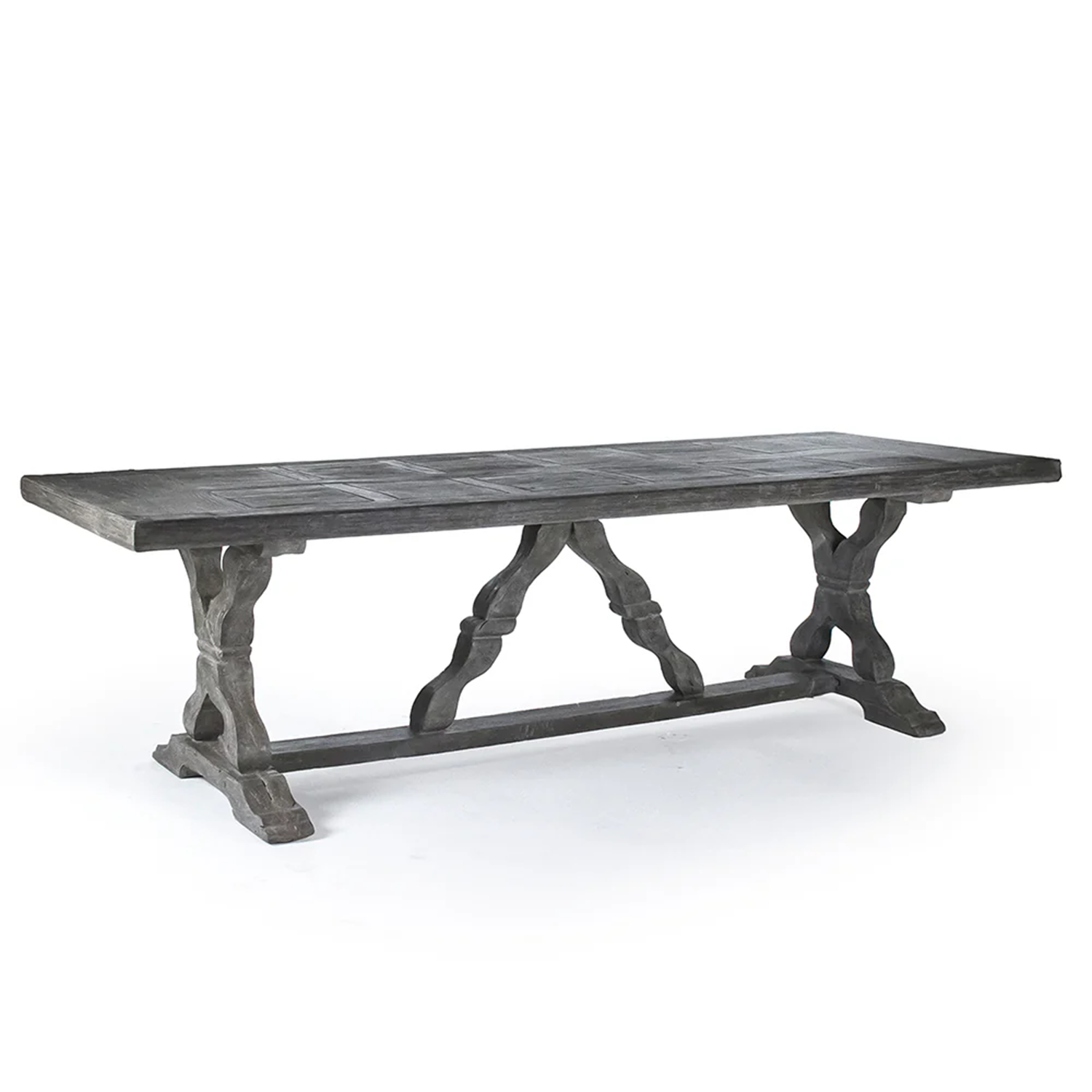 Aporta un toque de elegancia atemporal a tu comedor con la mesa de comedor rectangular Lucie de Zentique. Esta mesa, elaborada con un acabado gris distintivo, cuenta con una sofisticada base de caballete hecha de fibra de vidrio duradera. Su efecto desgastado intencional le da un encanto vintage, lo que la convierte en una pieza destacada para cualquier comedor.