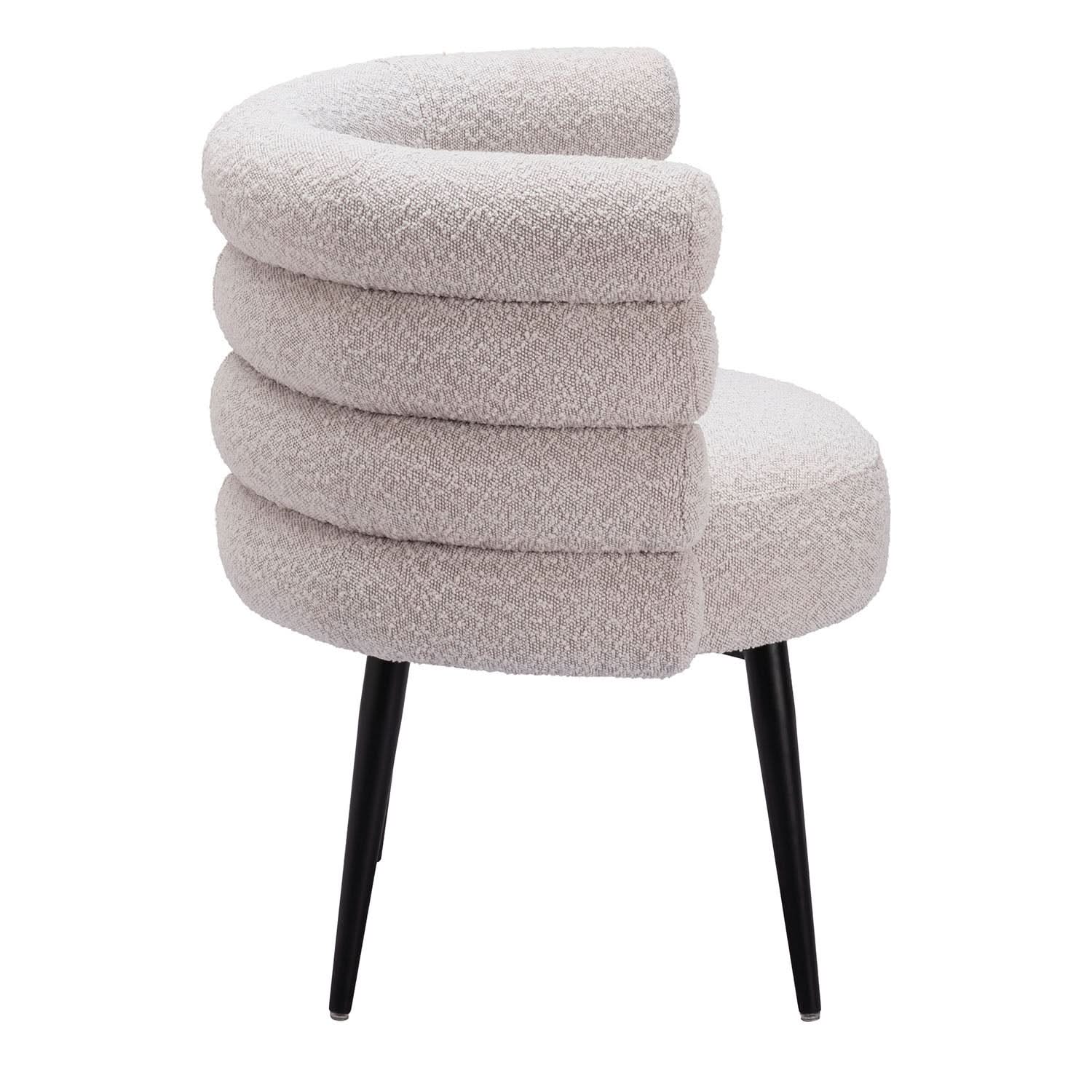 La silla de comedor Grena combina una estética moderna con una comodidad superior. Tapizada en una tela de piel de oveja y sostenida por un resistente marco de madera contrachapada y acero con revestimiento en polvo, esta silla es un complemento perfecto para cualquier comedor contemporáneo.