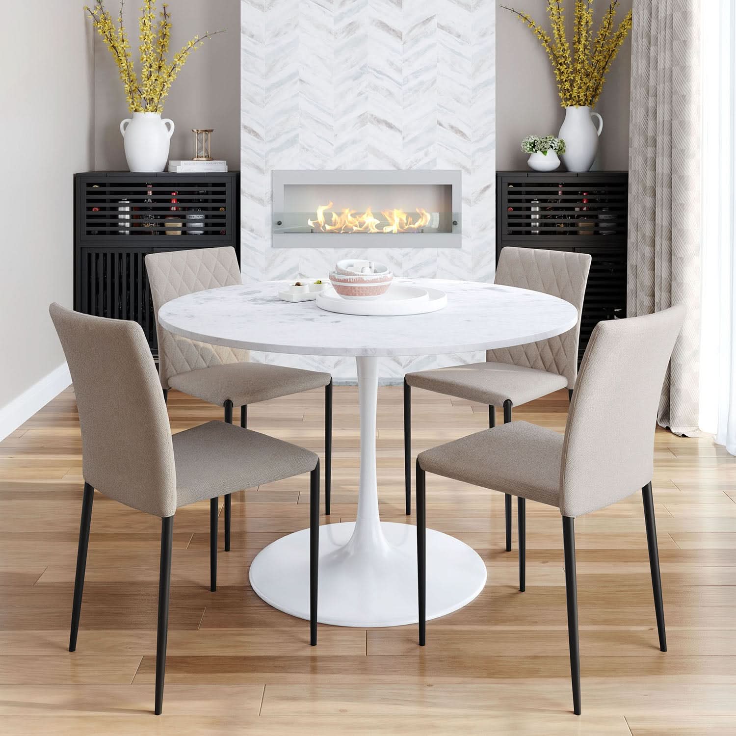 La mesa de comedor Phoenix es una maravilla moderna, con una superficie de mármol blanco impecable y elegantes patas de aluminio con revestimiento en polvo. Esta mesa elegante y resistente está diseñada para ser el centro de atención de cualquier comedor contemporáneo.