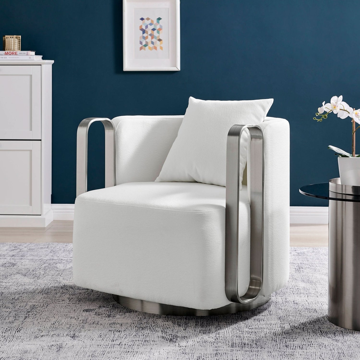 Presentamos la silla decorativa contemporánea Marvel, una silla decorativa contemporánea diseñada meticulosamente para lograr estilo y comodidad. Con un diseño moderno adornado con un borde plateado mate, esta silla agrega sin esfuerzo un toque de sofisticación a cualquier habitación.