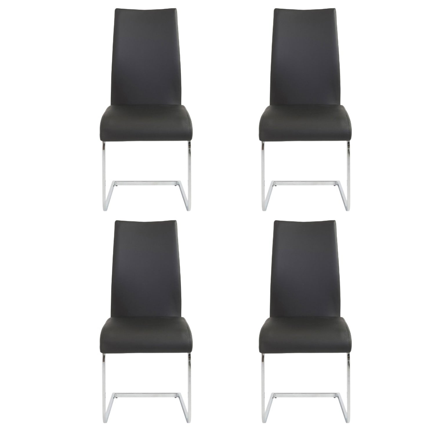 Elevate your dining experience with this Set of Four Cantilever Dining Chairs, a perfect blend of contemporary style and practical functionality. Designed to bring sophistication and comfort to your space, these chairs feature a sleek cantilever base made of durable steel finished in an elegant silver tone. Upholstered in high-quality black faux leather, they offer a timeless aesthetic that complements a variety of decor styles.