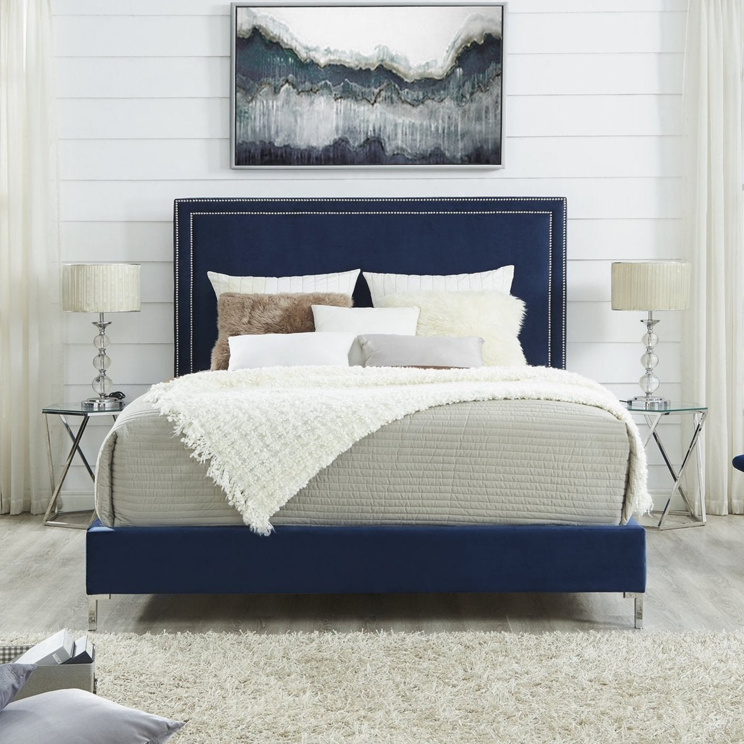 Glamour clásico:El cabecero y el marco de la cama con bordes rectos infunden elegancia y, al mismo tiempo, brindan un suave flujo de opulencia. Esta maravillosa pieza agrega un encanto majestuoso a cualquier dormitorio.