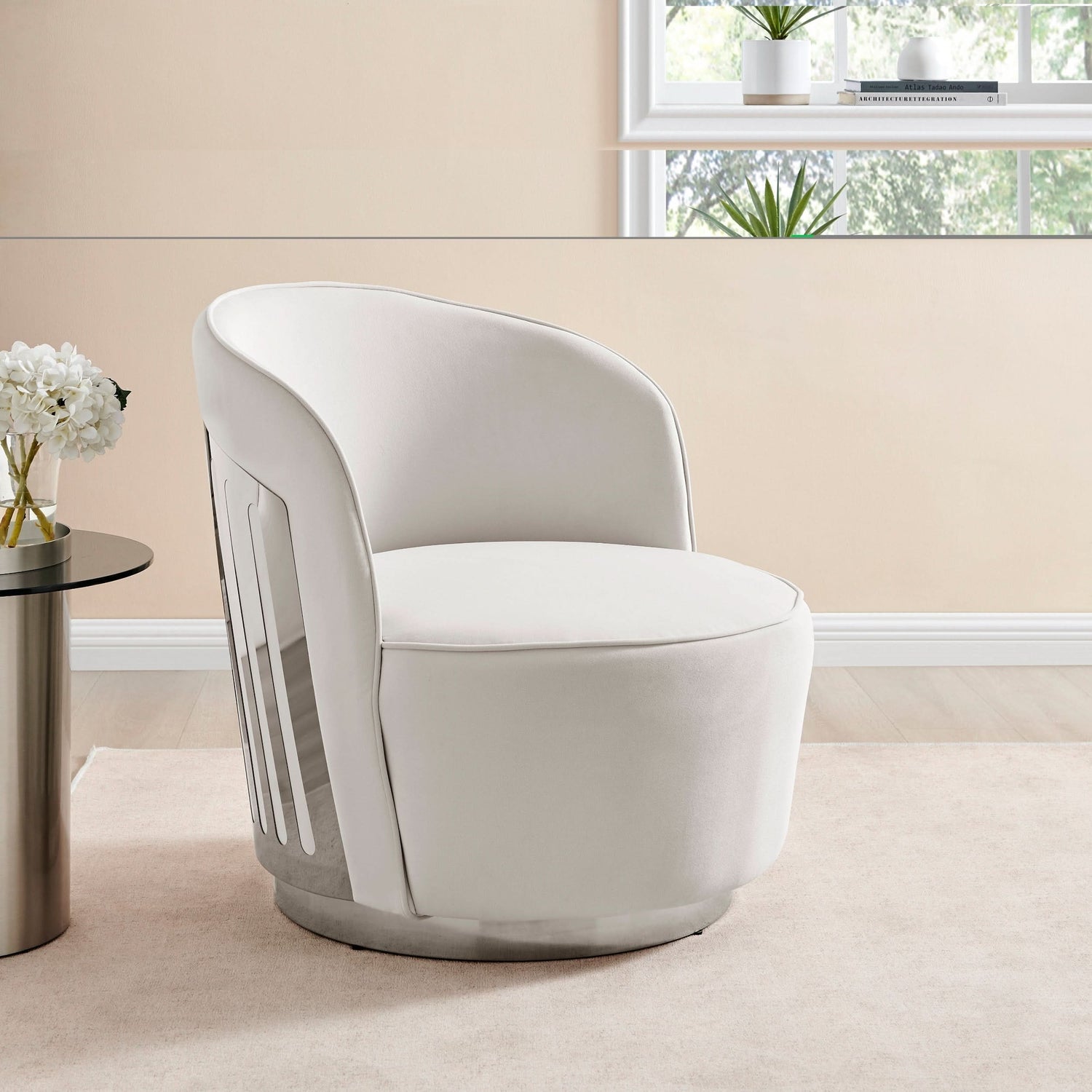 Presentamos la silla giratoria decorativa Luxe Elegance, una pieza de alta gama que encarna la sofisticación y la comodidad. Esta elegante silla está diseñada para agregar un toque de lujo a su sala de estar. Tapizada en un blanco prístino, sus contornos suaves brindan un abrazo acogedor.