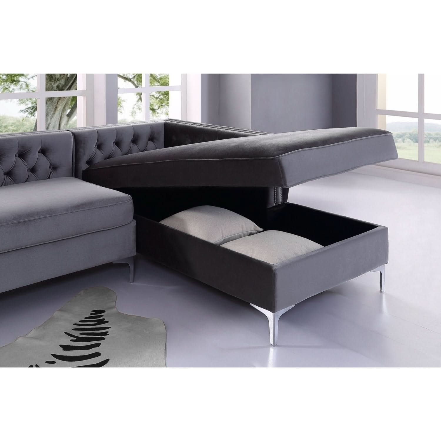 Sofá seccional de terciopelo con chaise longue y espacio de almacenaje Giovanni