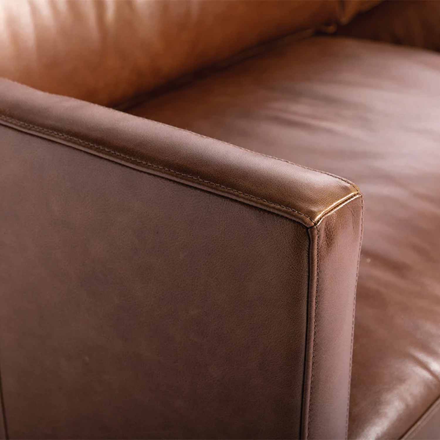 Crafted with high-quality materials, the Rogers Sofa is built to last, featuring a sturdy wooden frame, high-resiliency foam, and a sinuous wire spring system for ultimate support and stability. The natural characteristics of leather—such as color variations, wrinkles, and light scratches—enhance its unique appeal, ensuring that no two pieces are ever alike.