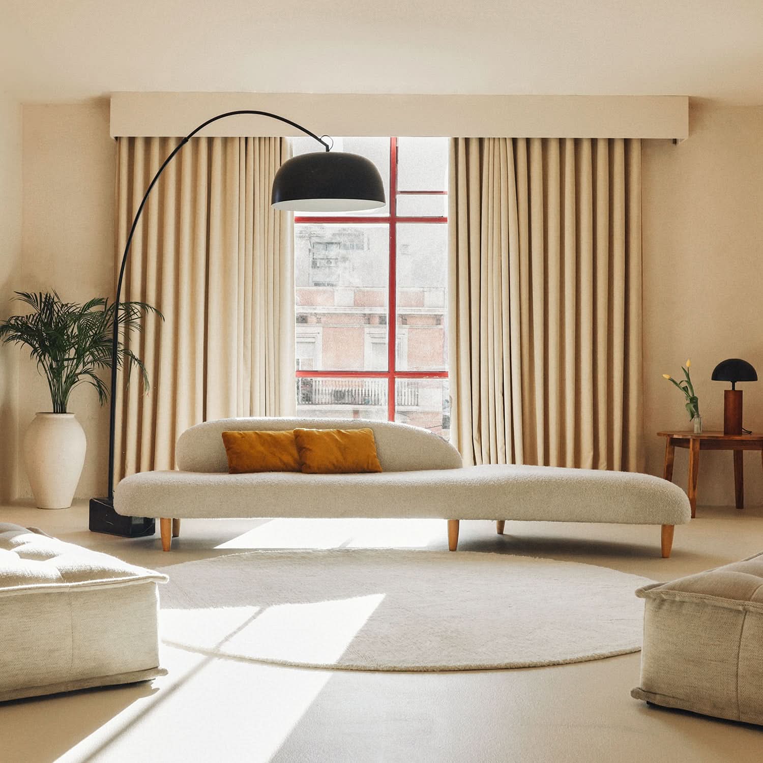 Con su diseño circular atemporal, esta hermosa alfombra de lana está tejida con un pelo de lana suave y extracorto, con un acabado de pelo ligeramente más largo alrededor de los bordes. Hecha a mano por nuestros artesanos en un color natural sin teñir, esta alfombra redonda está disponible en tres prácticos tamaños. Gracias a la patente WOOLABLE (R) de Lorena Canal, nuestras alfombras de lana también se pueden lavar a máquina. Son ligeras y menos rígidas que las alfombras de lana tejidas tradicionalmente. Viene con una práctica bolsa de algodón y una base antideslizante independiente.