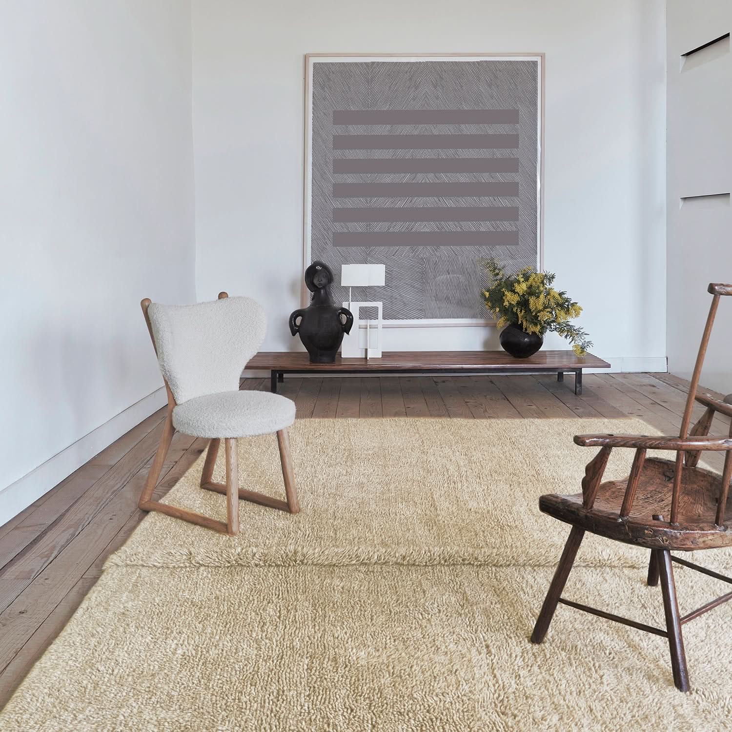 • Materiales de alta calidad:Fabricada con 100% pelo de lana y una base de algodón reciclado, esta alfombra es lujosa y respetuosa con el medio ambiente.