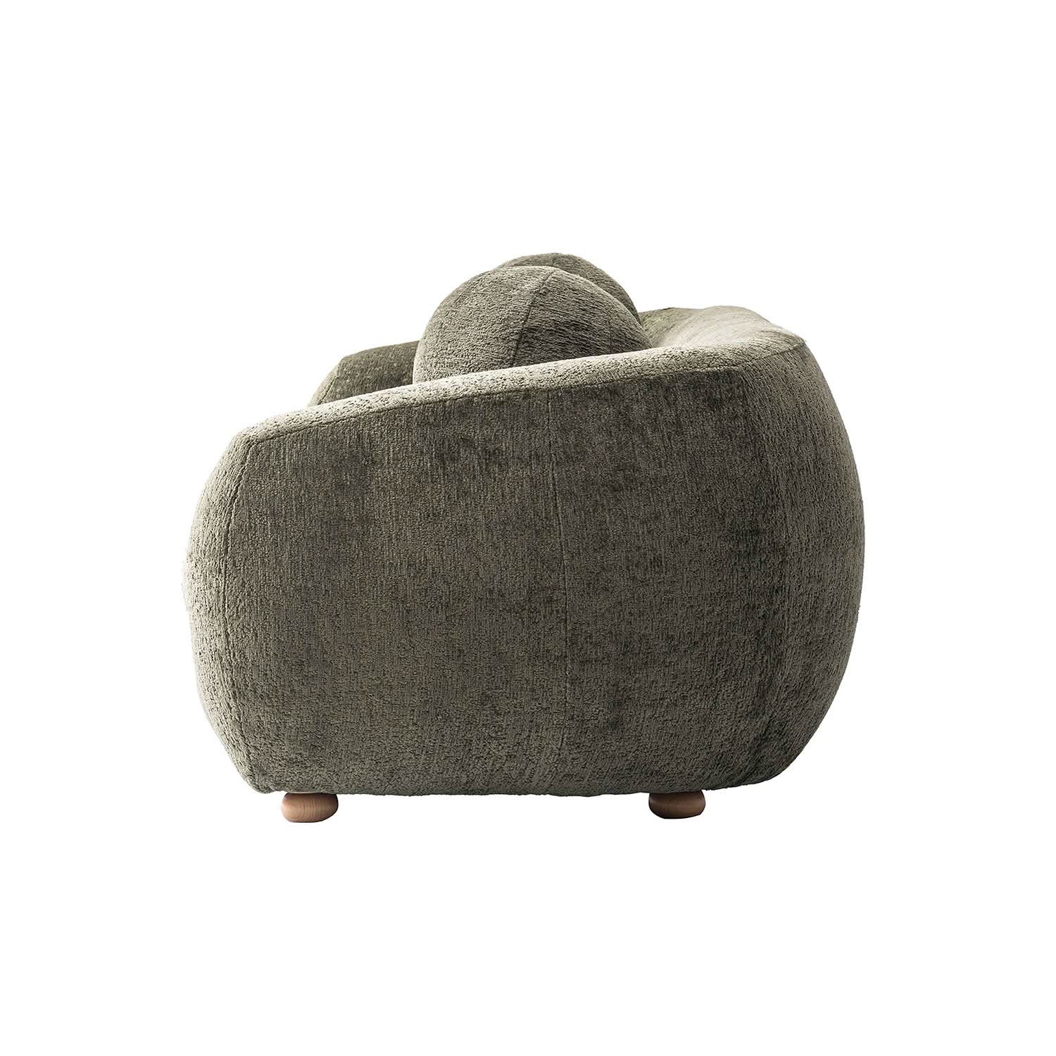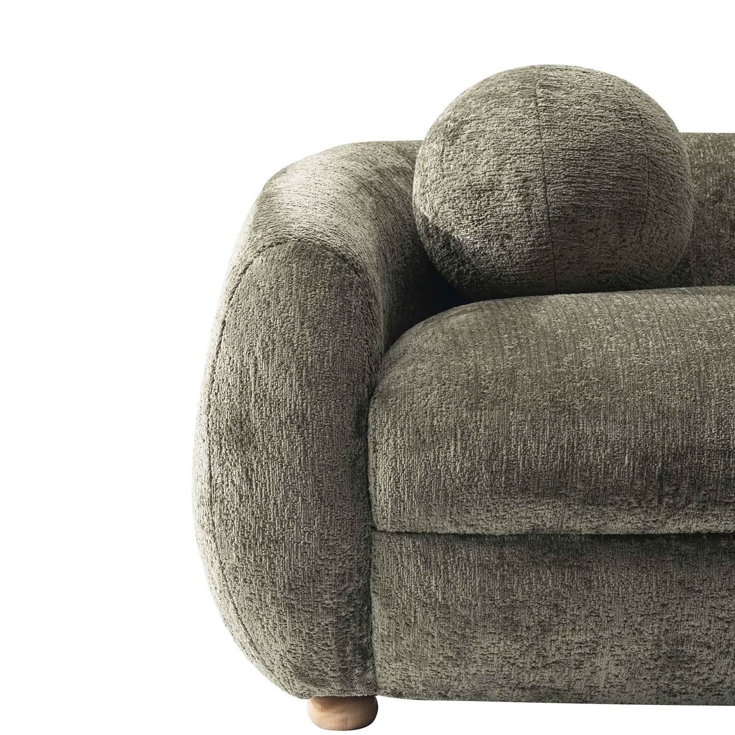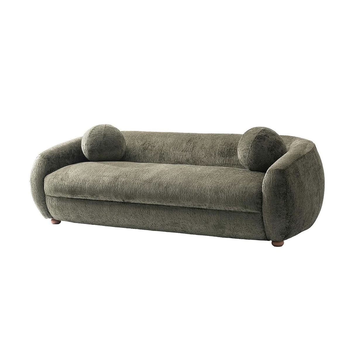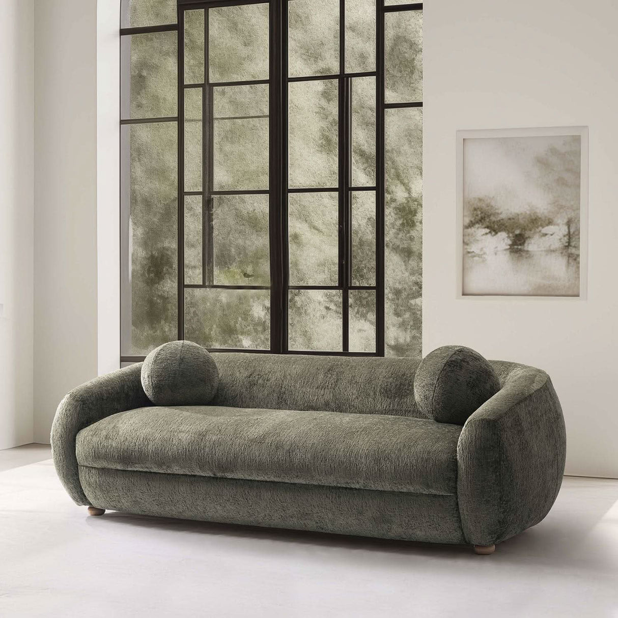 Este sofá, tapizado de lujo en chenilla y con relleno de espuma de alta densidad, ofrece una experiencia de asiento lujosa. Incluye dos almohadones para mayor encanto y comodidad.