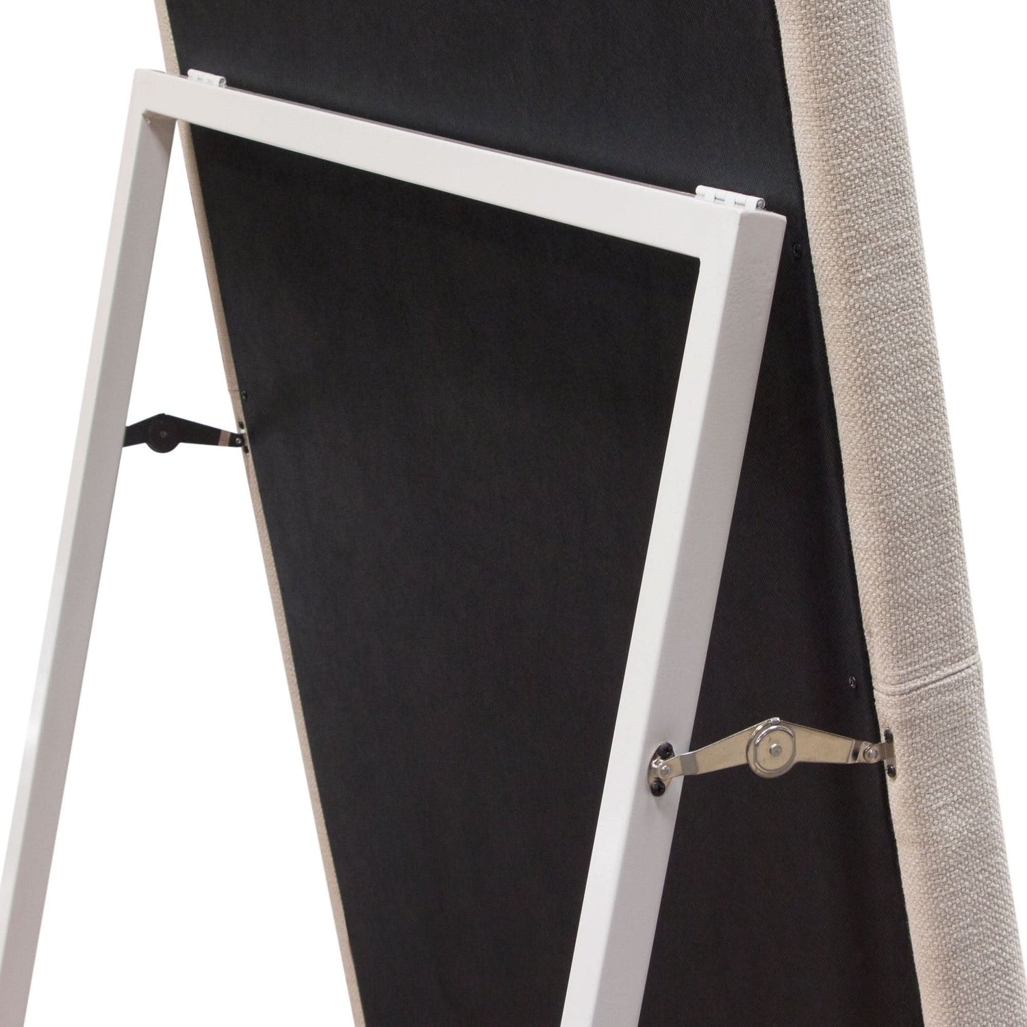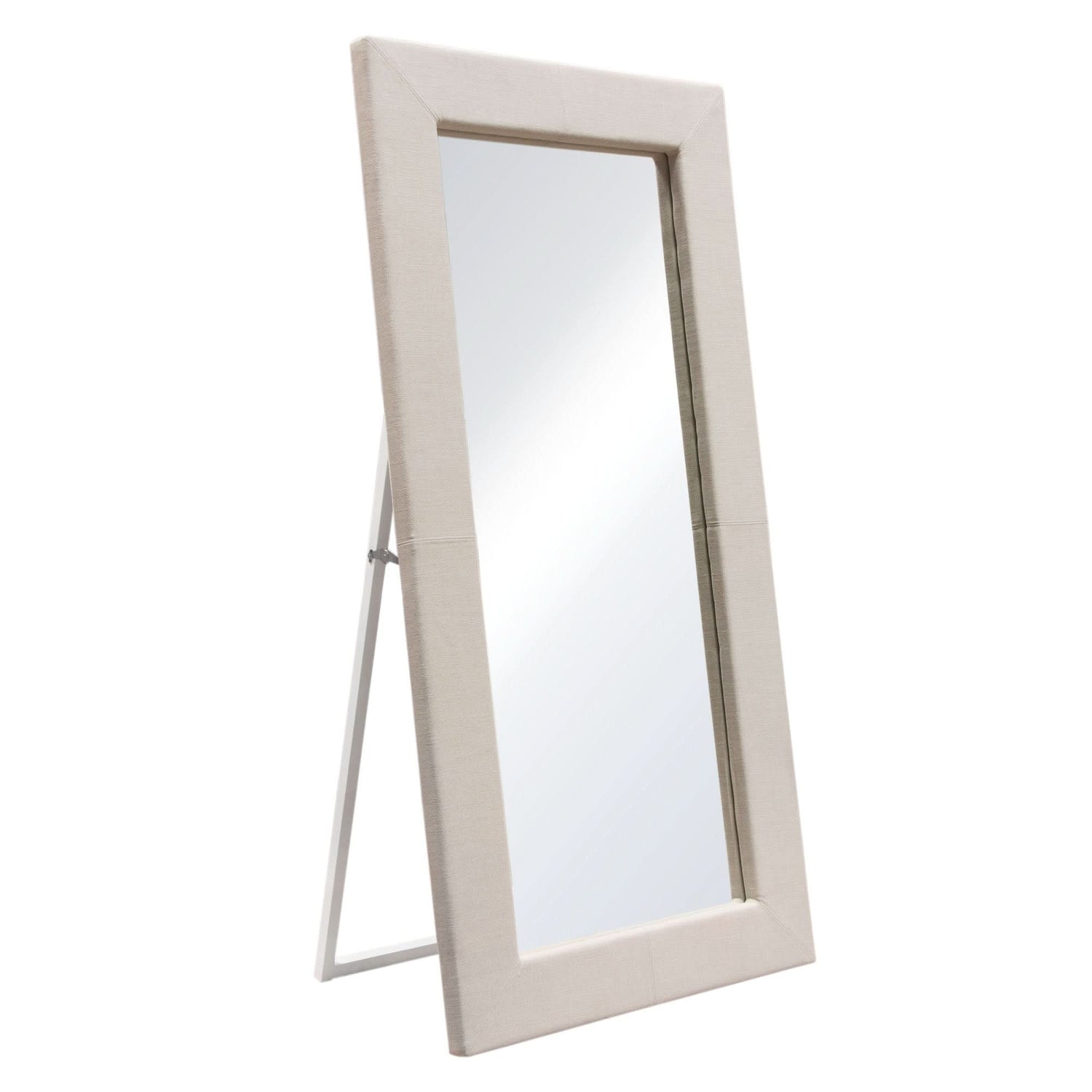 Impresionante espejo rectangular de 81" de la colección Luxe de Diamond Sofa. El marco envuelto en lino color arena agrega estilo y sustancia a cualquier habitación. El espejo se puede usar como una pieza decorativa más pequeña o independiente gracias a su mecanismo de caballete con cierre. Dale vida a un rincón de tu hogar con este mueble bellamente esculpido que agregará belleza y profundidad a la decoración de tu hogar.