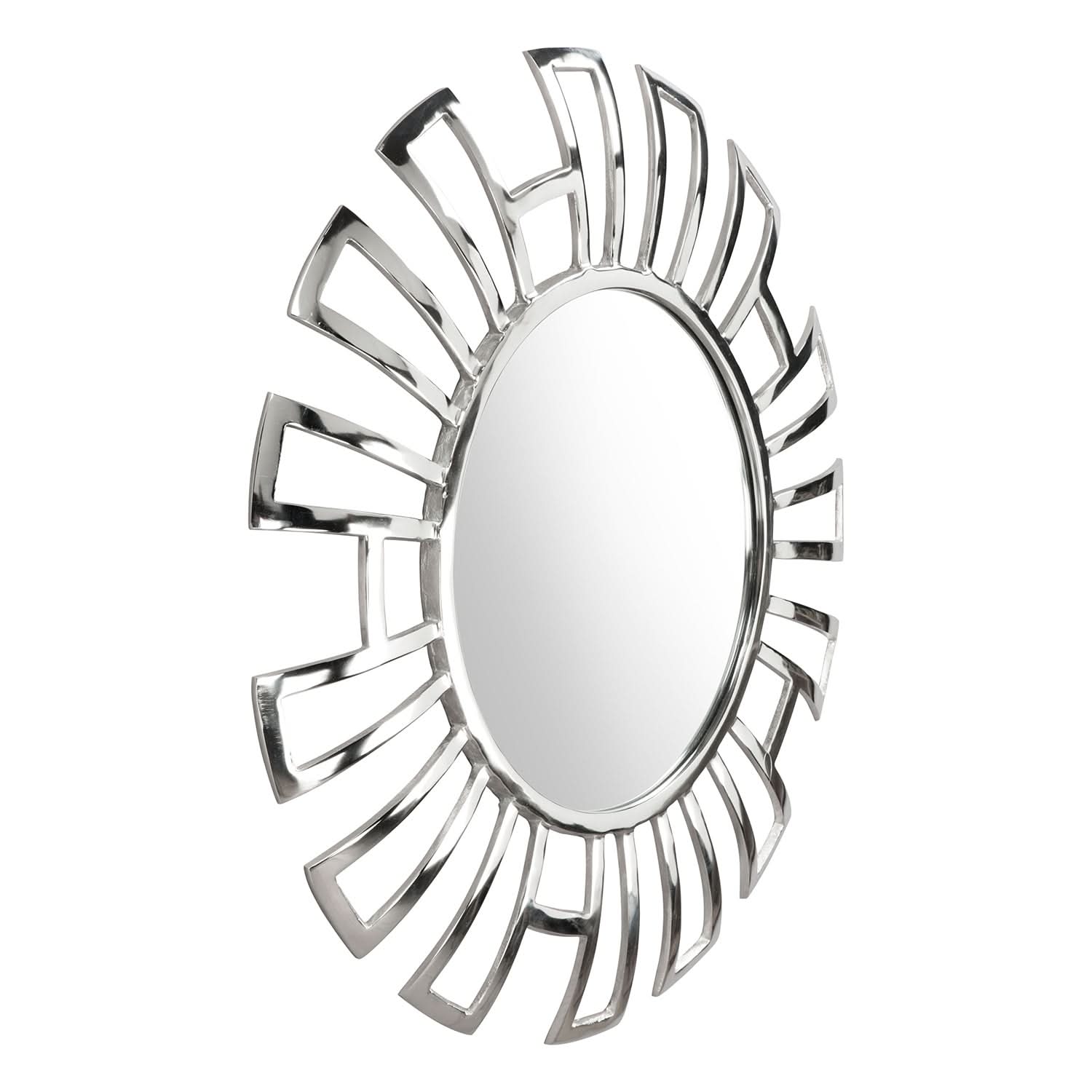 El espejo redondo Calmar añade un toque de elegancia y sofisticación moderna a cualquier habitación. Con un elegante acabado cromado y fabricado con aluminio pulido, MDF y vidrio de espejo, este espejo redondo es perfecto para realzar la estética de su sala de estar, dormitorio o pasillo. Su diseño contemporáneo y materiales de alta calidad lo convierten en un complemento elegante y funcional para la decoración de su hogar.