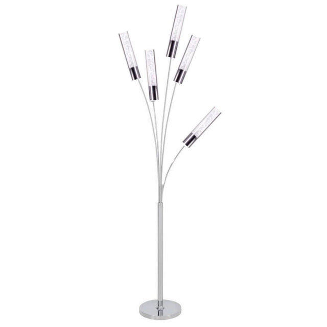 Esta moderna versión de las lámparas de pie no solo ofrece belleza, sino también elegancia, con cinco cilindros de cristal sobre una base redonda cromada. Esta lámpara de pie es perfecta para crear iluminación ambiental y es la solución perfecta para los problemas de luminosidad en el hogar. La lámpara se controla mediante un cómodo interruptor de pie de encendido y apagado para que no tengas que agacharte constantemente. La tira de LED está diseñada para durar más de 30 000 horas, o 3 años si la tienes encendida constantemente.