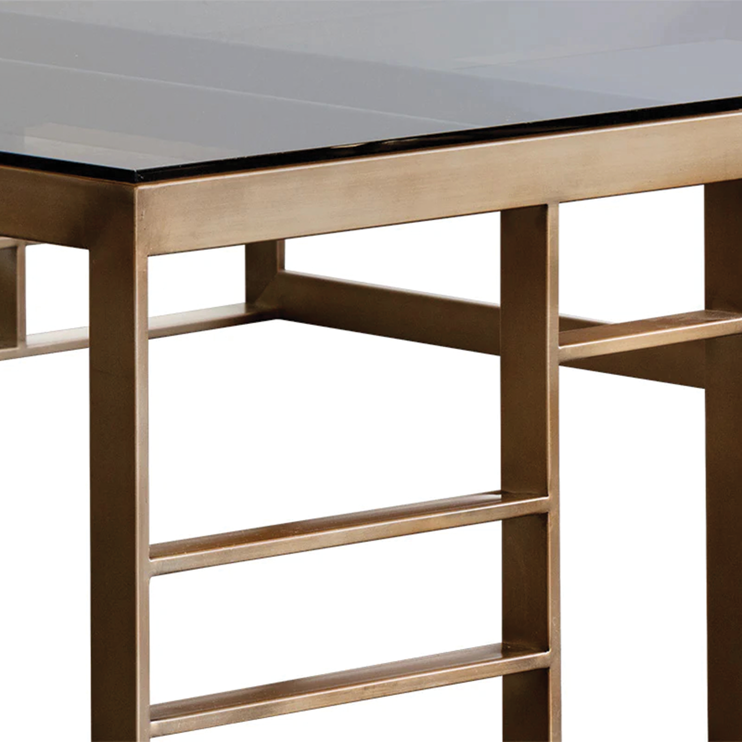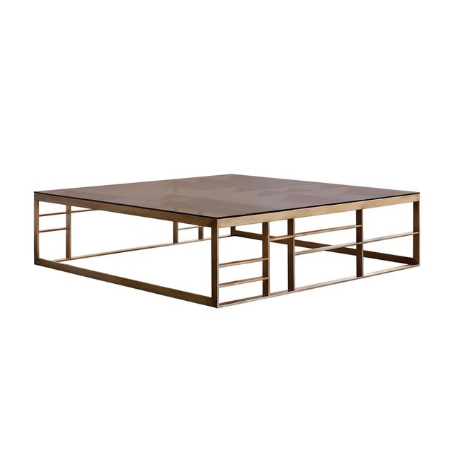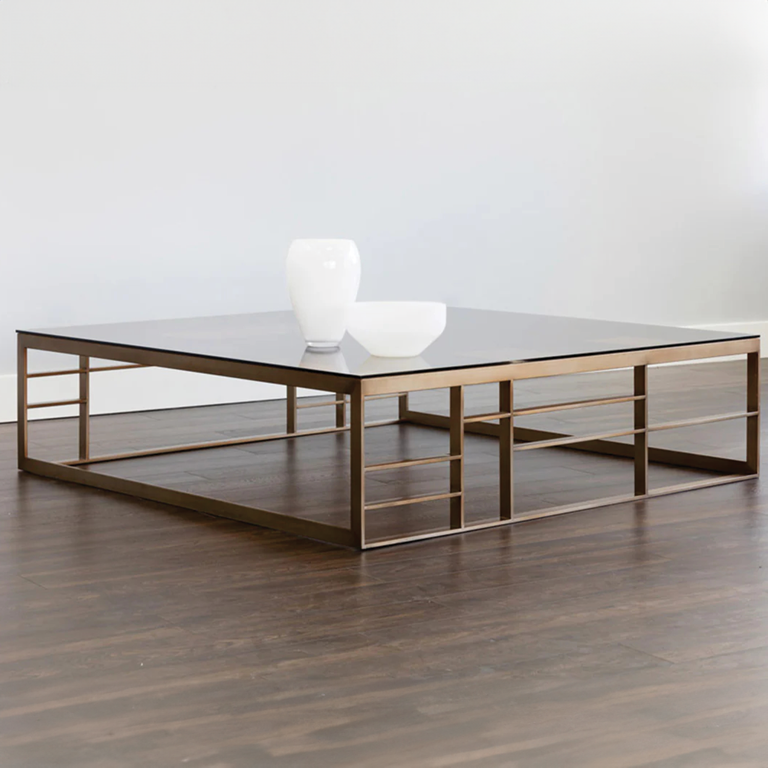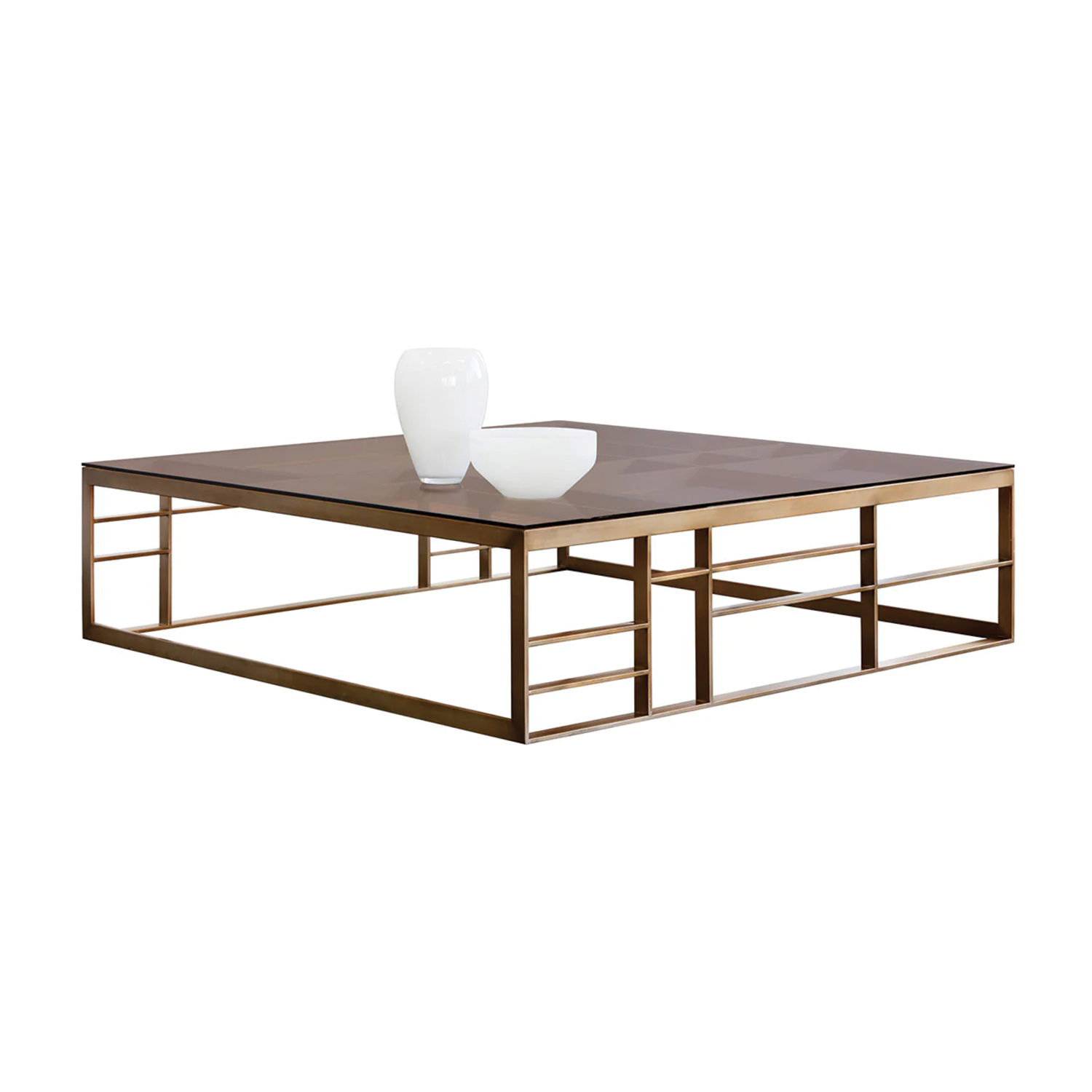 Experience classic luxury with the Martha Coffee Table, an oversized square statement piece that brings elegance and sophistication to any space. Crafted with an 8mm brown tempered glass top and an intricately designed stainless steel base finished in brushed antique brass, this coffee table is a true work of art. Its sleek glass and warm metal tones make it an ideal choice for both contemporary and traditional interiors, adding an exquisite focal point to any room.