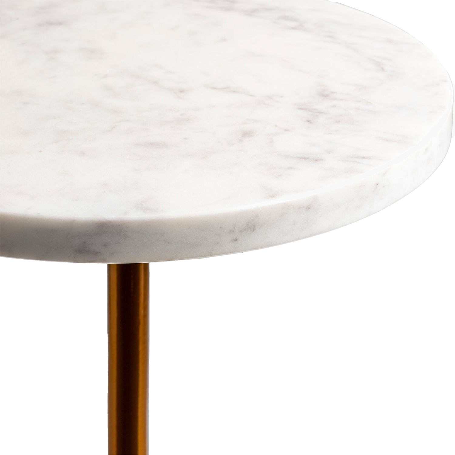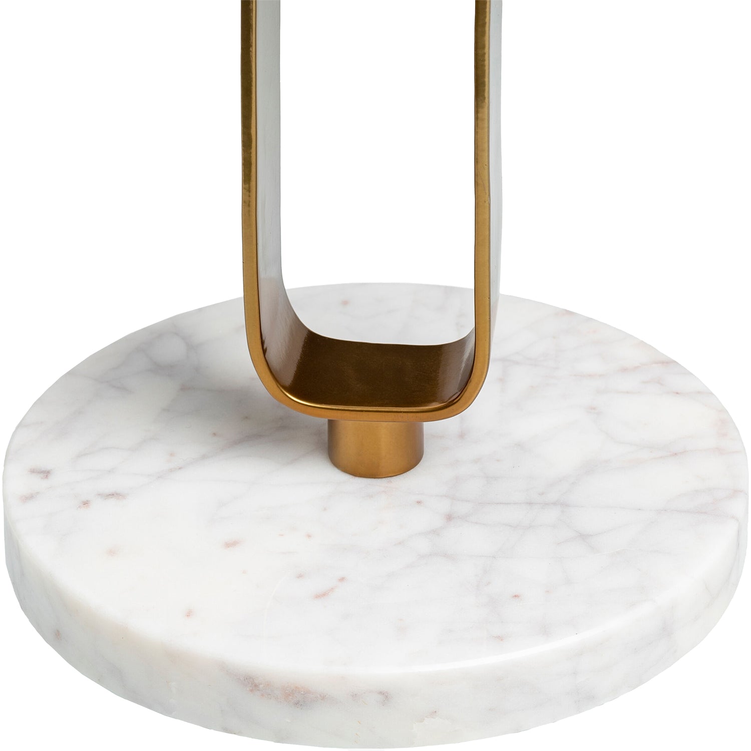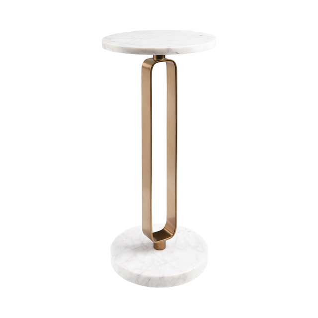 The Bendigo End Table is a refined blend of luxurious materials and minimalist design, perfect for adding elegance to any room. With an ivory matte marble top and a brass bronze iron base, this end table exudes sophistication while offering functionality. Ideal as an accent table or a bedside companion, it provides a stylish surface for decor and essentials.