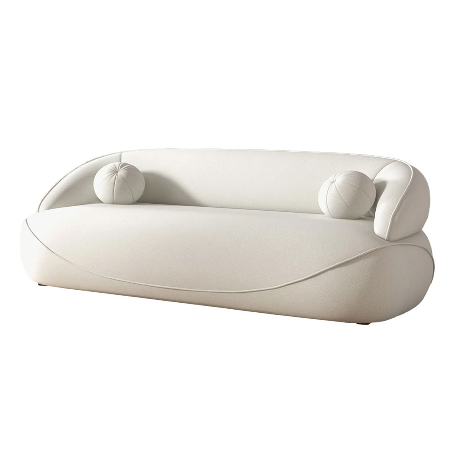 Transforme su sala de estar en un acogedor y atractivo refugio con este elegante sofá francés de bouclé con mechones. Diseñado a la perfección tanto para recibir invitados como para disfrutar de un momento tranquilo en familia, este sofá combina un acolchado de espuma de alta densidad con una artesanía excepcional para garantizar la comodidad y la durabilidad. Su diseño elegante y estilizado lo convierte en una pieza destacada en cualquier sala de estar, estudio, apartamento, loft urbano o condominio. Tapizado en suave y lujoso tejido francés de bouclé, este sofá ofrece una superficie cálida y texturizada que irradia sofisticación.