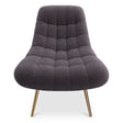 La elegante silueta de la silla se sustenta sobre patas delgadas y cónicas con un acabado en tono dorado que le aporta un toque de refinamiento. Estas patas también son desmontables, lo que hace que la silla sea fácil de reubicar, una característica práctica que no compromete la estética del diseño.