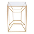 La mesa auxiliar Canyon aporta un toque de glamour a tu sala de estar con su diseño elegante y materiales lujosos. Con una superficie de vidrio templado transparente y un marco de acero con revestimiento en polvo dorado, esta mesa auxiliar es perfecta para agregar un toque sofisticado a cualquier habitación. Su tamaño compacto y su aspecto elegante la convierten en una opción ideal para salas de estar, dormitorios o como mesa auxiliar junto a tu sillón favorito.