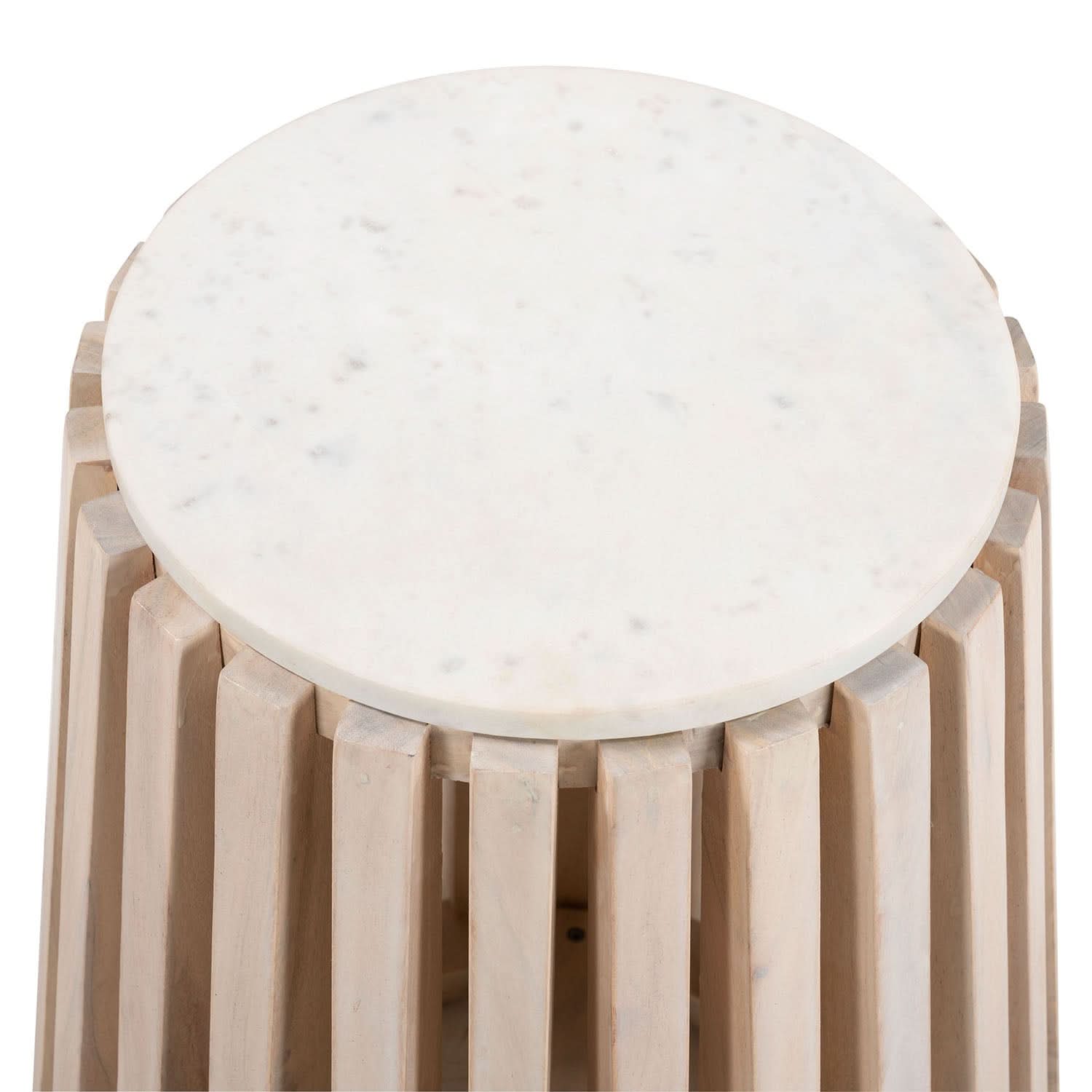 La mesa auxiliar Cyprus es un complemento elegante y funcional para cualquier espacio contemporáneo. Con una combinación de mármol multicolor, MDF y madera de acacia blanqueada, esta mesa auxiliar combina la belleza natural con el diseño moderno. Su tamaño compacto y su aspecto elegante la hacen perfecta para salas de estar, dormitorios o como pieza decorativa.