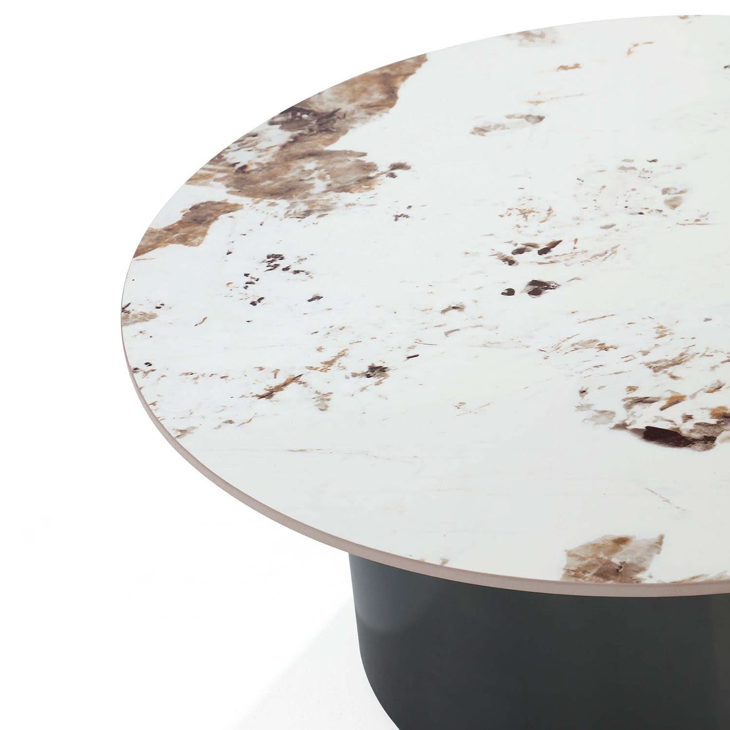 Experimente el epítome de la elegancia moderna con la Colección Alondra. Su elegante base de acero inoxidable negro y su brillante superficie de piedra sinterizada realzan sin esfuerzo cualquier espacio, mientras que el ingenioso diseño permite que la mesa auxiliar se deslice sobre la mesa de café para lograr un efecto de capas cautivador.