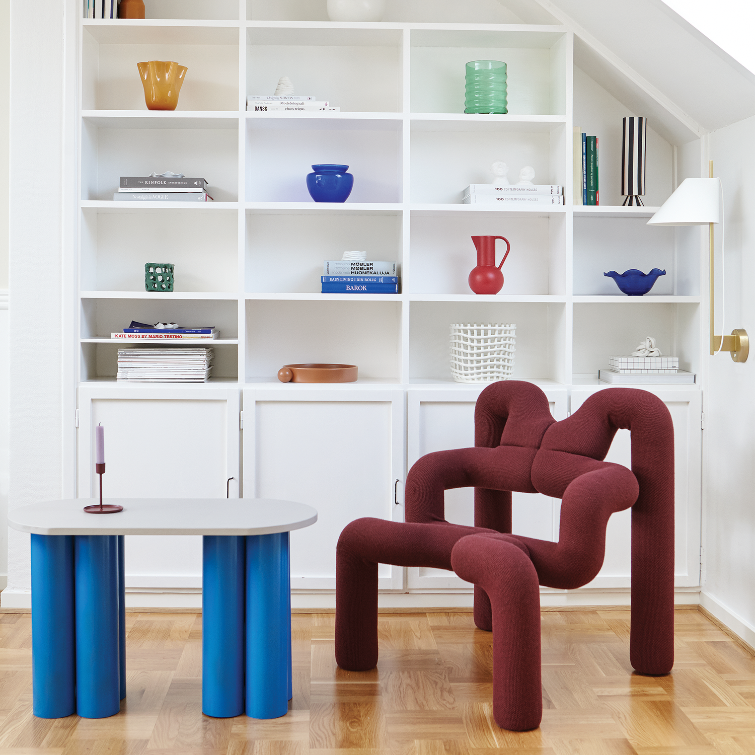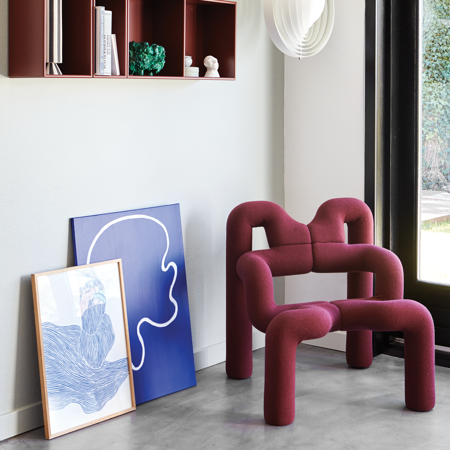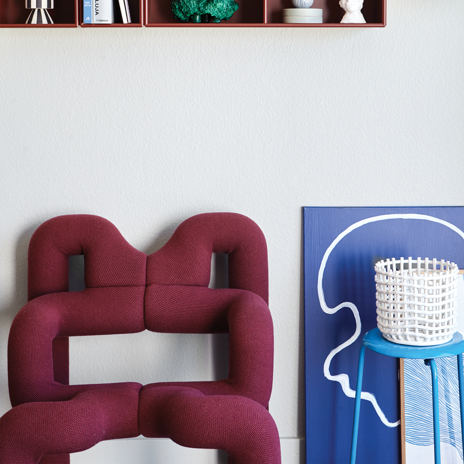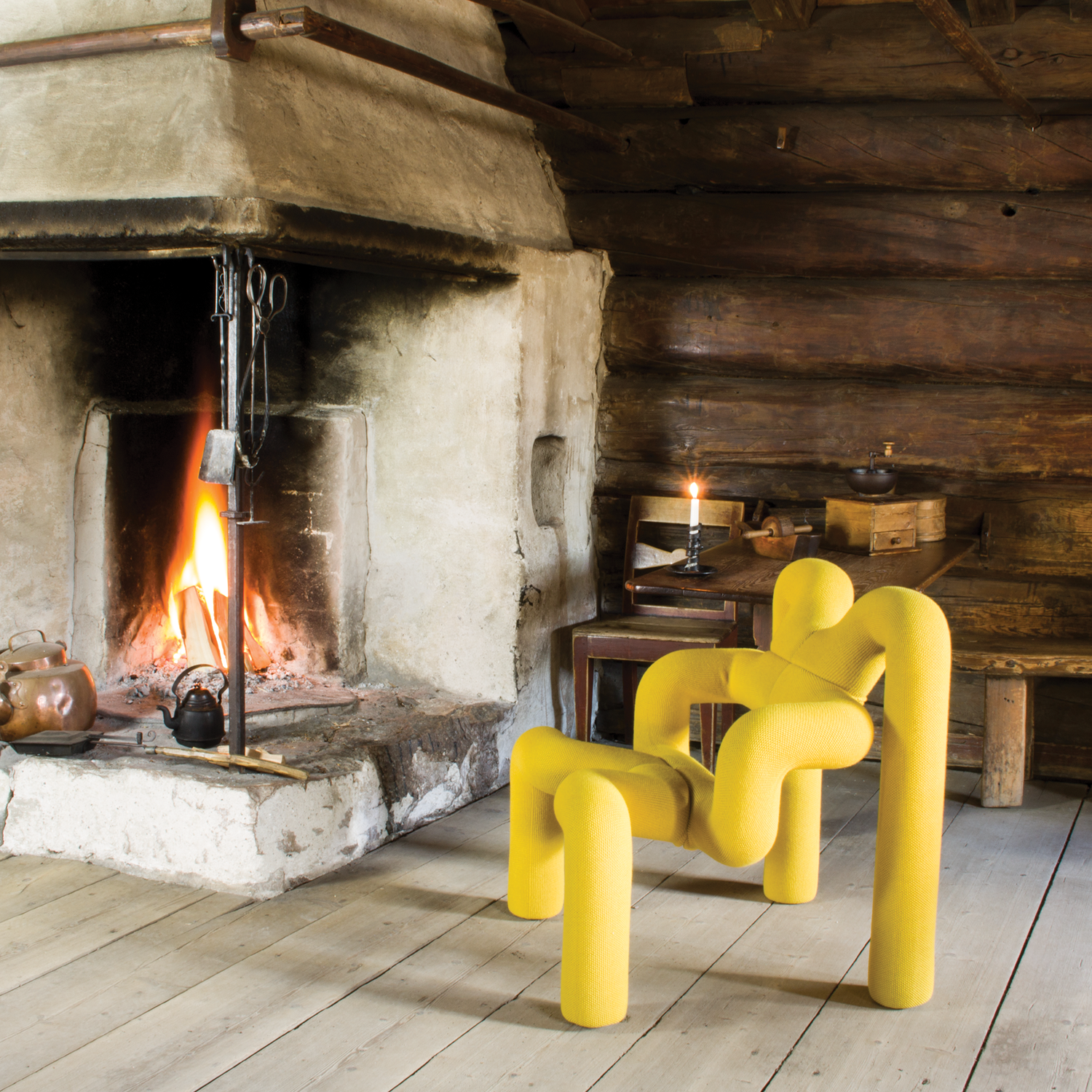 Designed by Terje Ekstrøm for Varier, Ekstrem is not merely a chair, but rather a stand-alone object. It represents one of Norway’s first postmodern designs. Its unexpected geometrics allows you to sit forward with feet on the ground, sideways with legs placed on the armrests or completely backward with the front of the torso against the chair’s back. A sitting experience that can only be described as out of the ordinary.