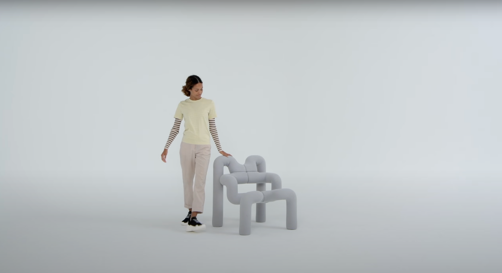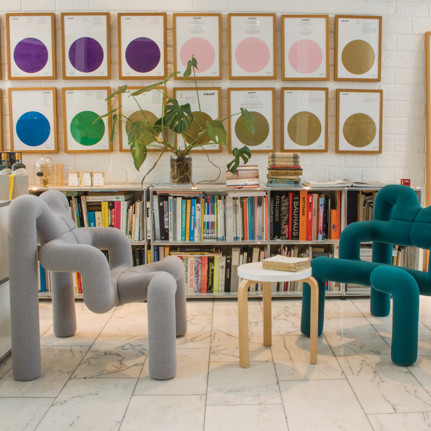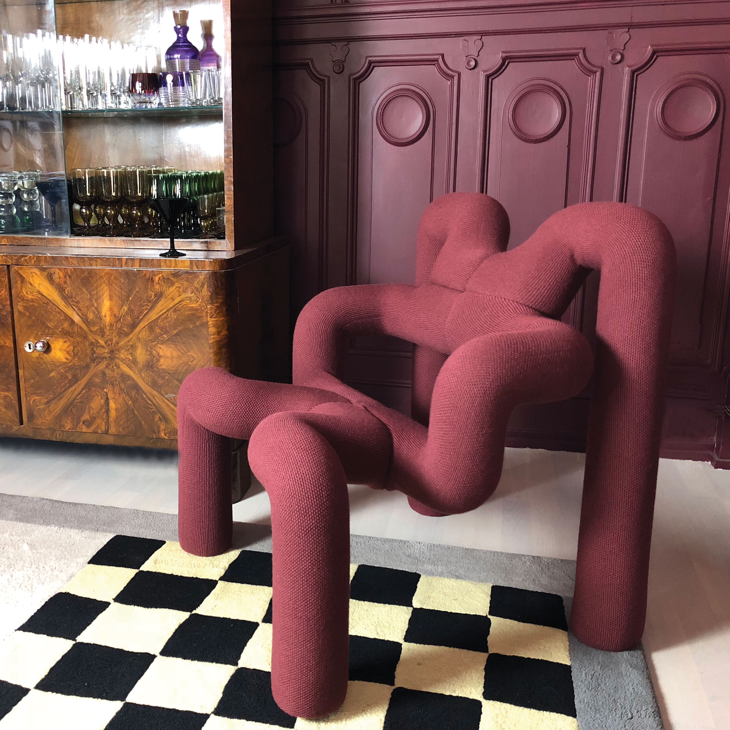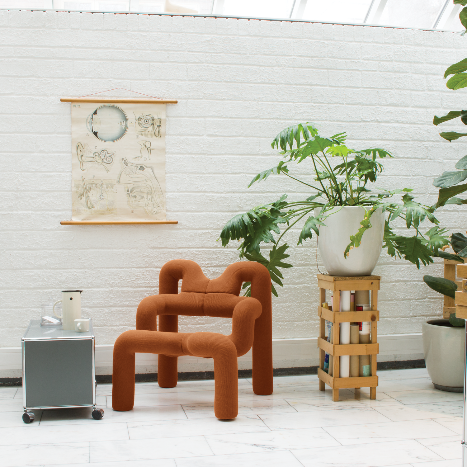 Designed by Terje Ekstrøm for Varier, Ekstrem is not merely a chair, but rather a stand-alone object. It represents one of Norway’s first postmodern designs. Its unexpected geometrics allows you to sit forward with feet on the ground, sideways with legs placed on the armrests or completely backward with the front of the torso against the chair’s back. A sitting experience that can only be described as out of the ordinary.