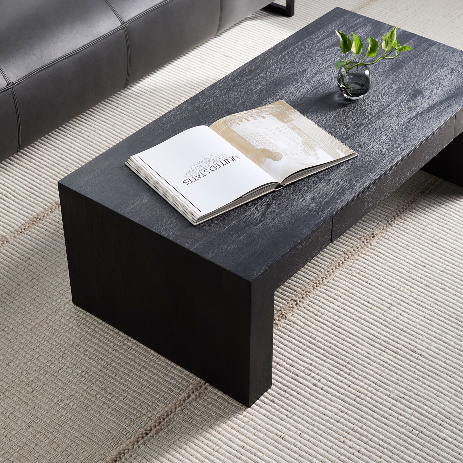 Enhance your living space with the sophisticated Surya Coburn Modern Contemporary Coffee Table. This sleek, black coffee table combines minimalistic elegance with durable design, making it a perfect centerpiece for contemporary and modern interiors. Its clean lines and sturdy build offer both aesthetic appeal and practicality, designed to effortlessly complement a range of decor styles. Ideal for those who appreciate understated luxury, this coffee table creates a bold yet harmonious look in any room.