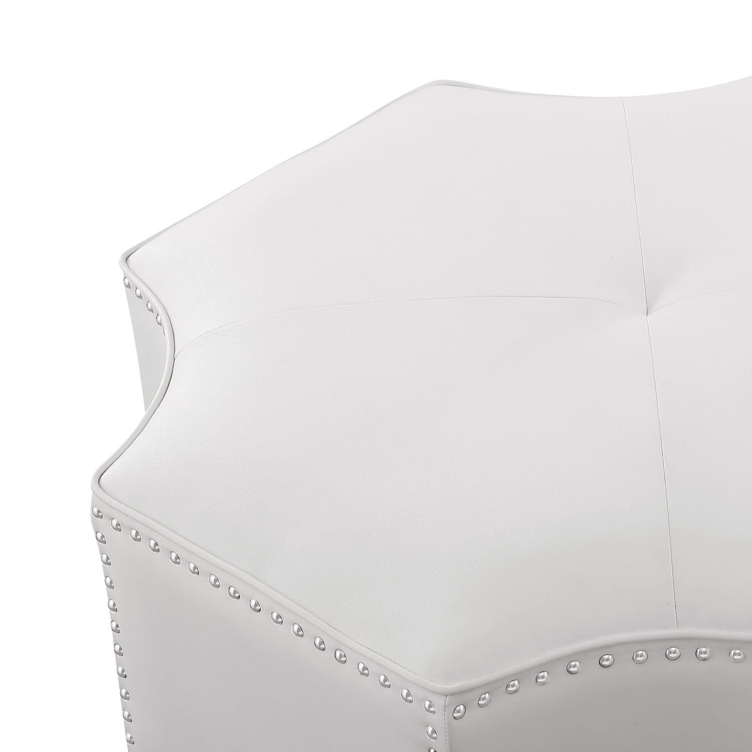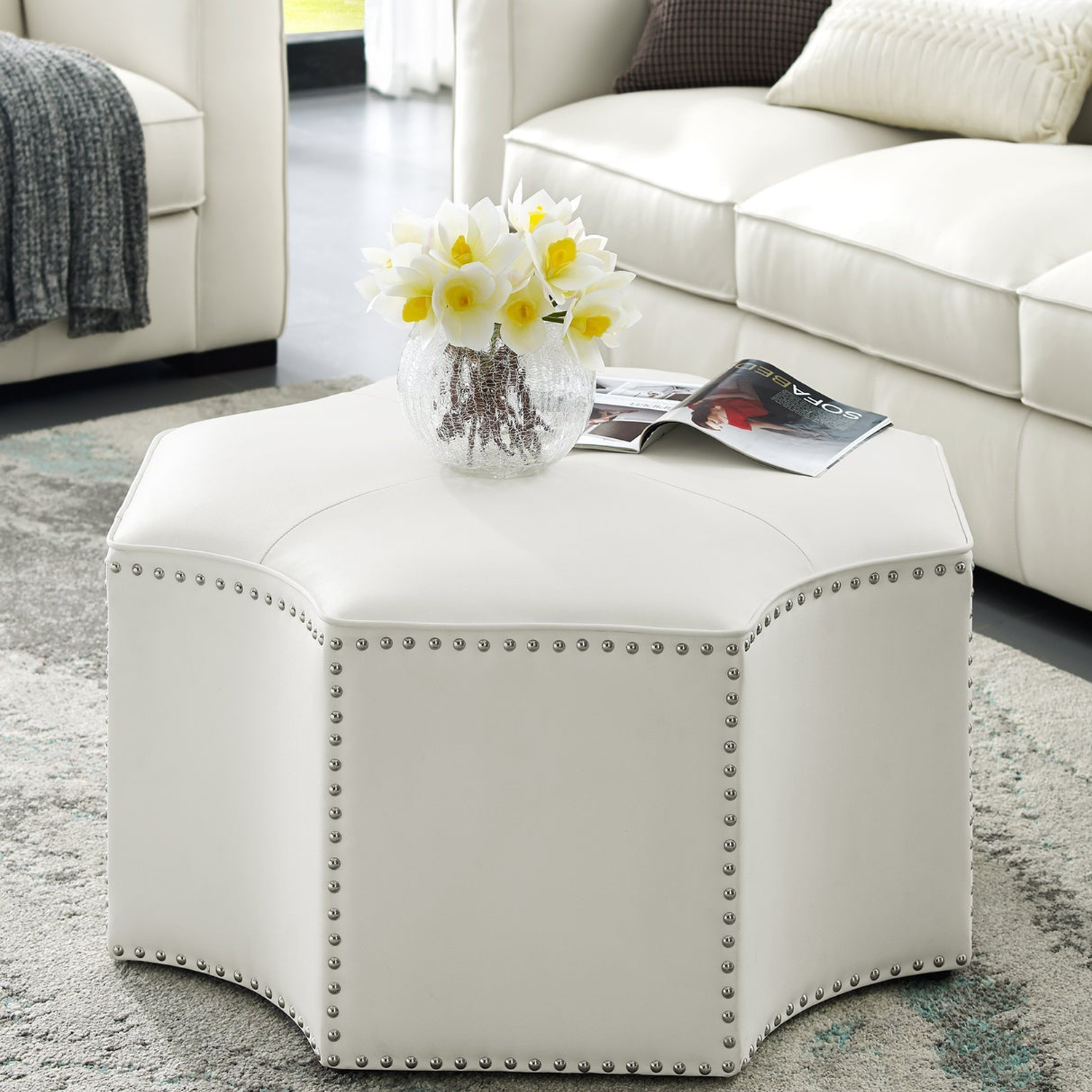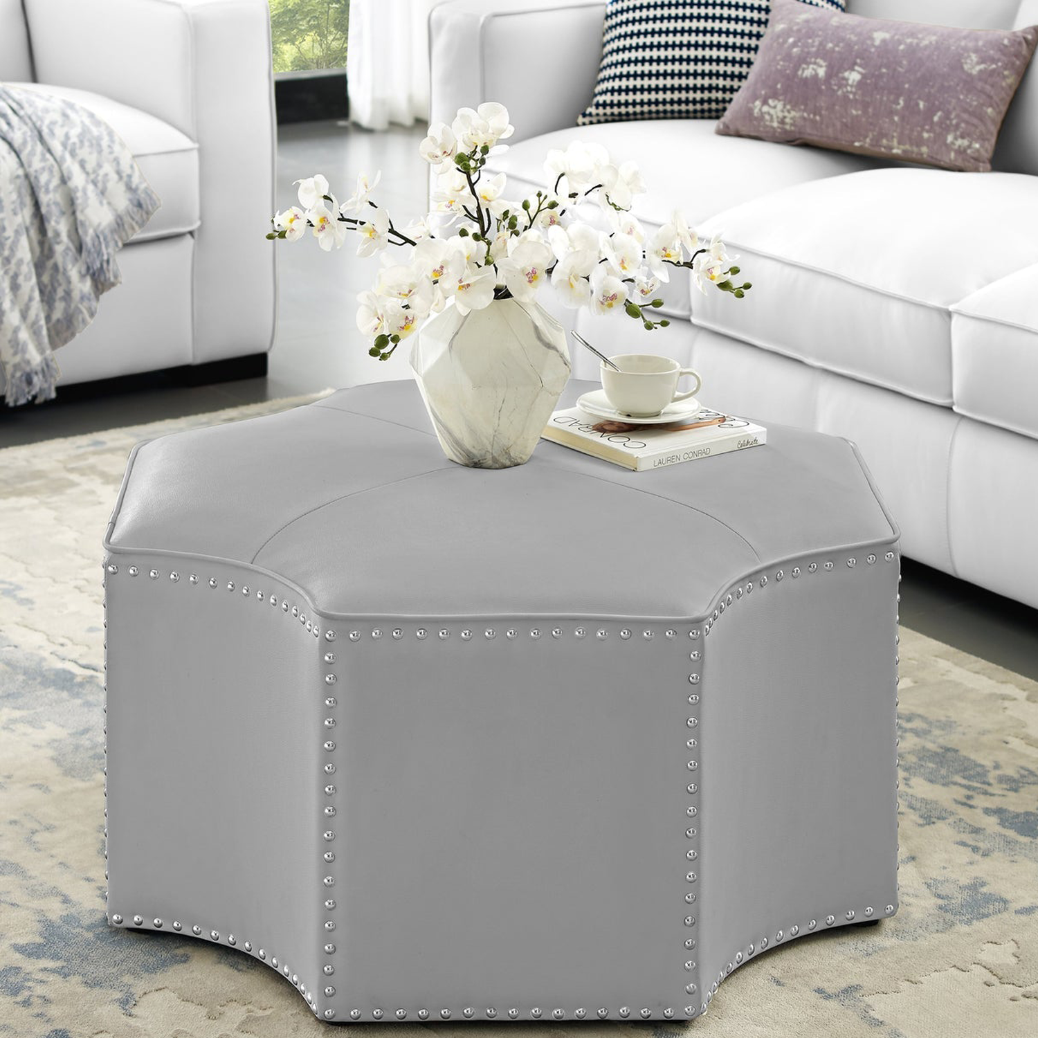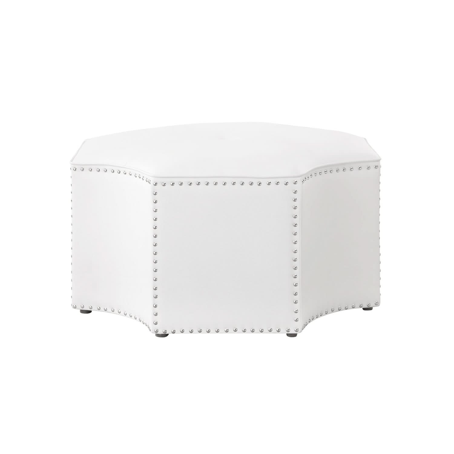 This charming cocktail ottoman will become the wow factor for your home with its unique octagon shape and nail head trim that impacts an aesthetic appeal. Eight gracefully curved sides are defined with hand tacked nail head trim. This ottoman is an easy addition to your living or family room, padded for comfort in a unique shape you will always love. It could be a great addition to variety of different home styles, and it is available in multiple colors in three different fabrication, velvet, leather PU and linen.