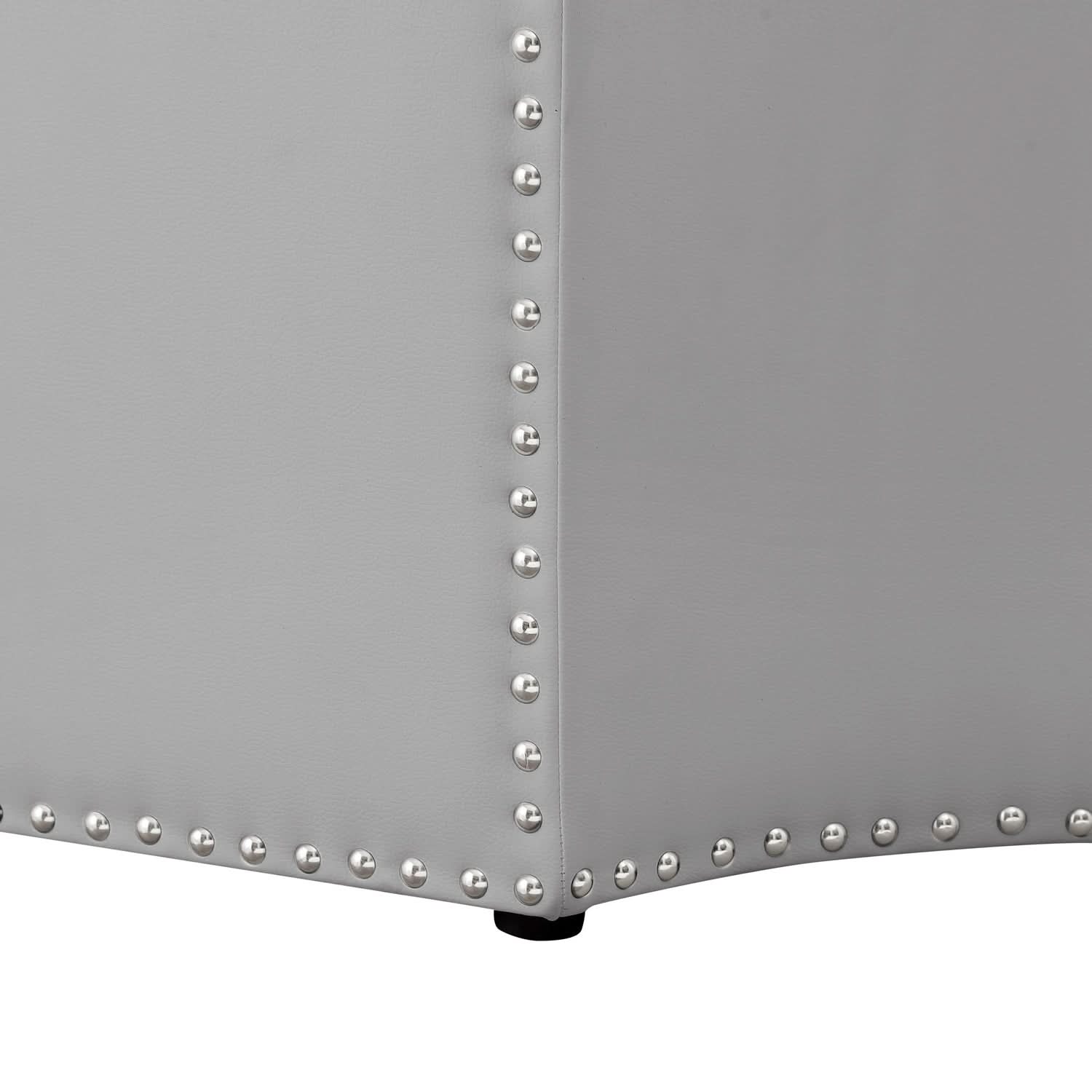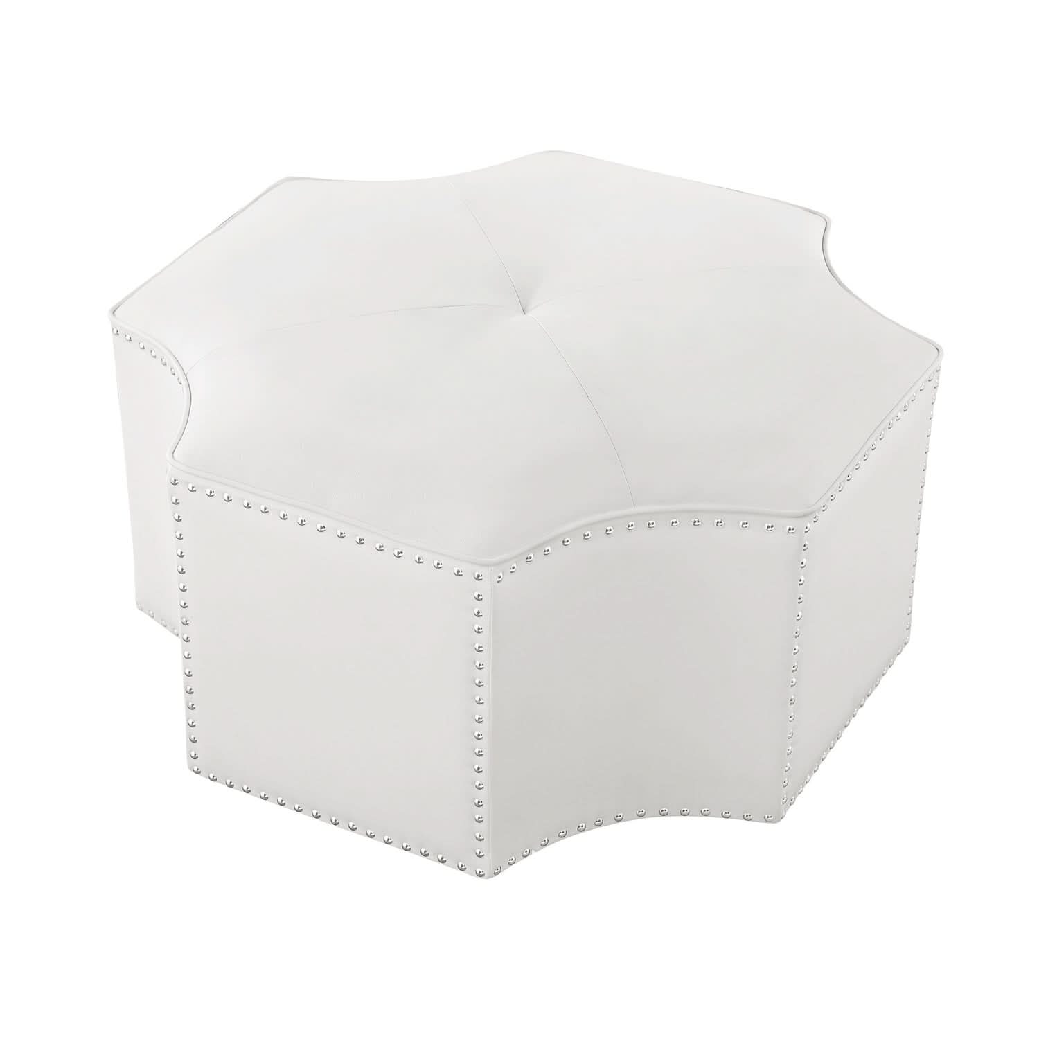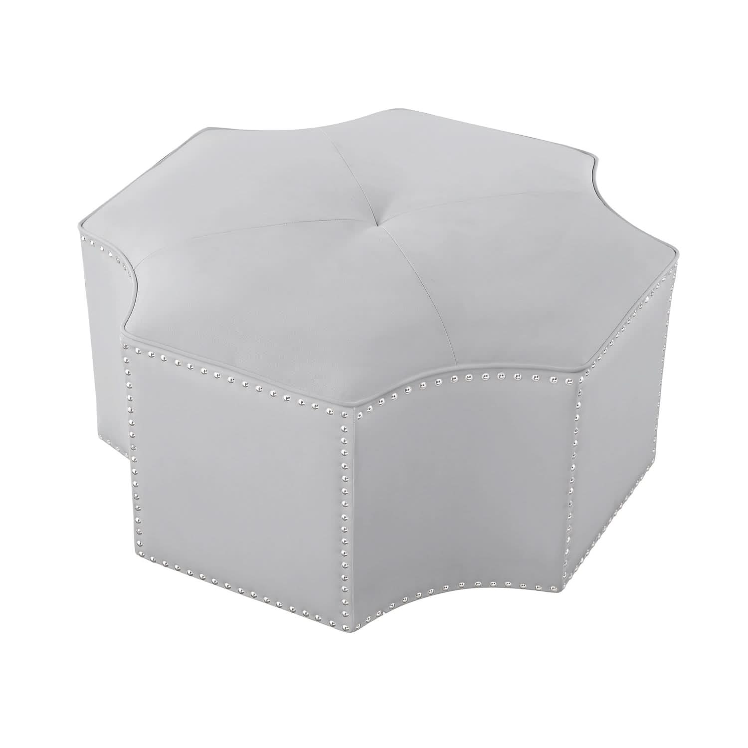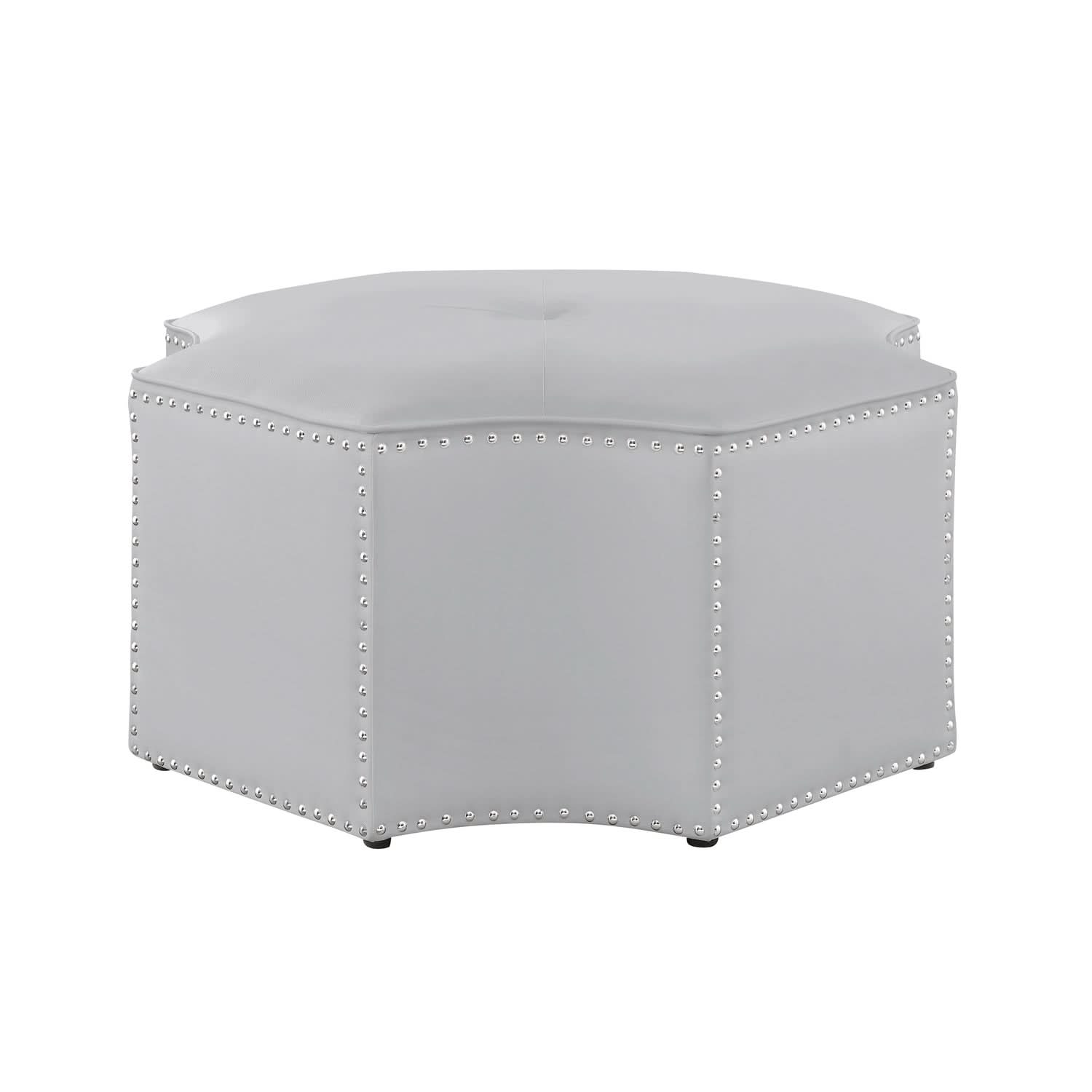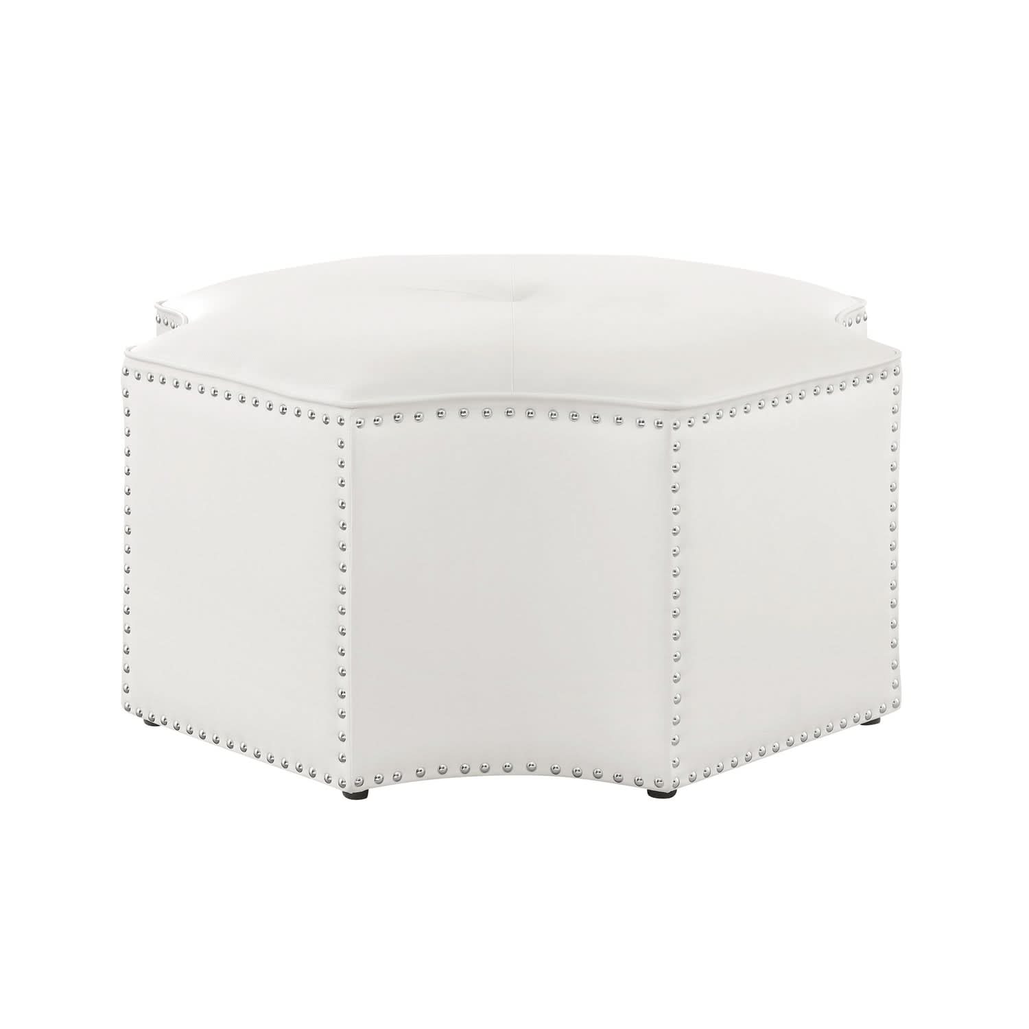 This charming cocktail ottoman will become the wow factor for your home with its unique octagon shape and nail head trim that impacts an aesthetic appeal. Eight gracefully curved sides are defined with hand tacked nail head trim. This ottoman is an easy addition to your living or family room, padded for comfort in a unique shape you will always love. It could be a great addition to variety of different home styles, and it is available in multiple colors in three different fabrication, velvet, leather PU and linen.