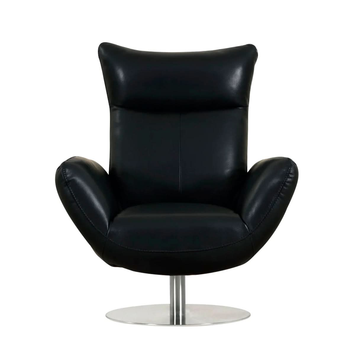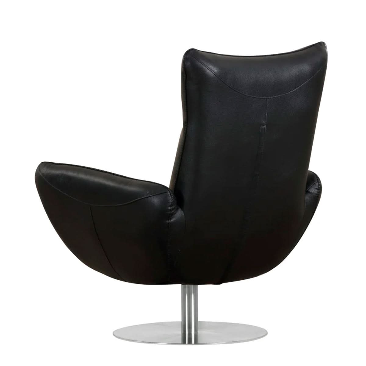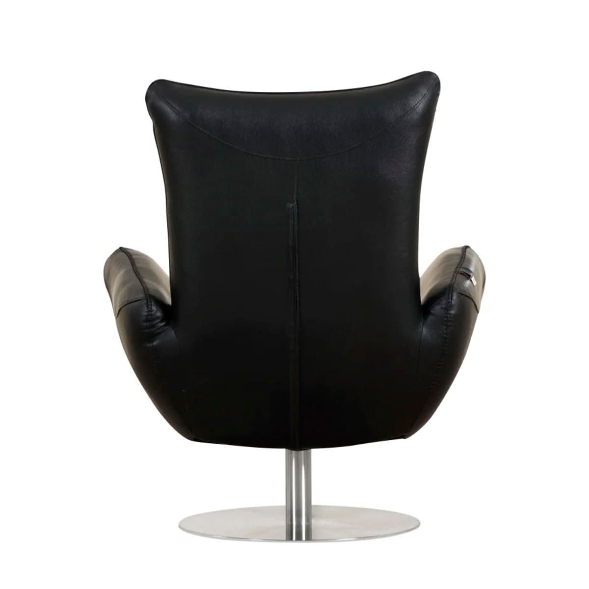 Crafted from high-quality leather, the chair features a rich black hue that brings a touch of timeless refinement to any space. The color both enhances the chair's visual appeal and makes it a versatile addition to any decorating scheme, fitting seamlessly into both residential and commercial settings.