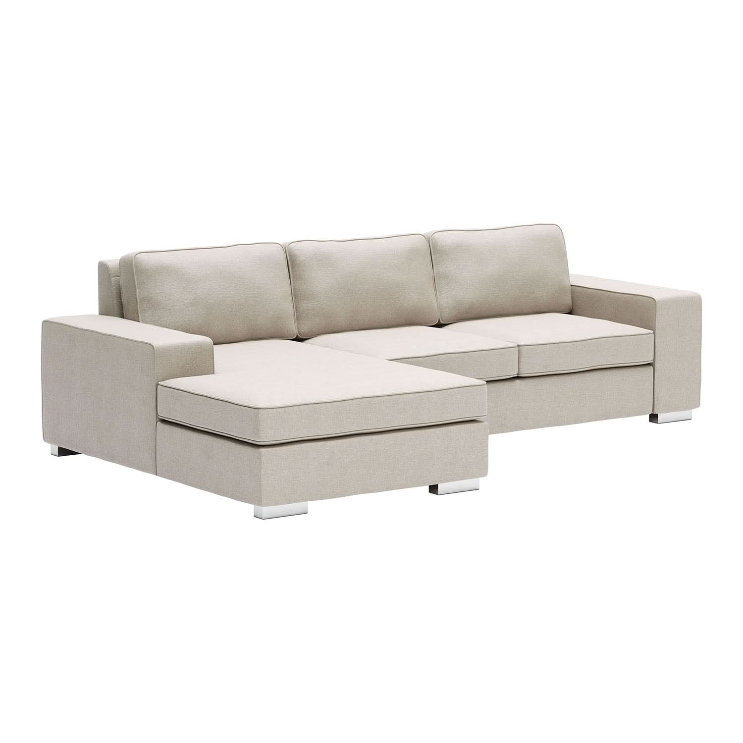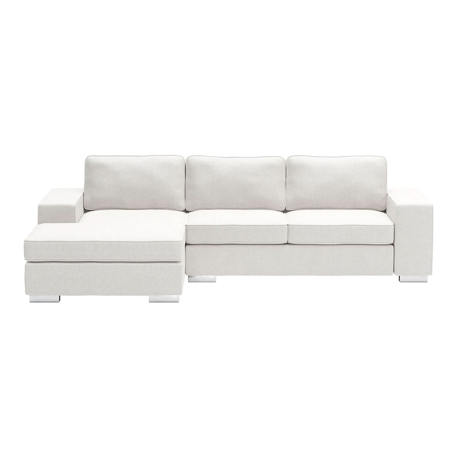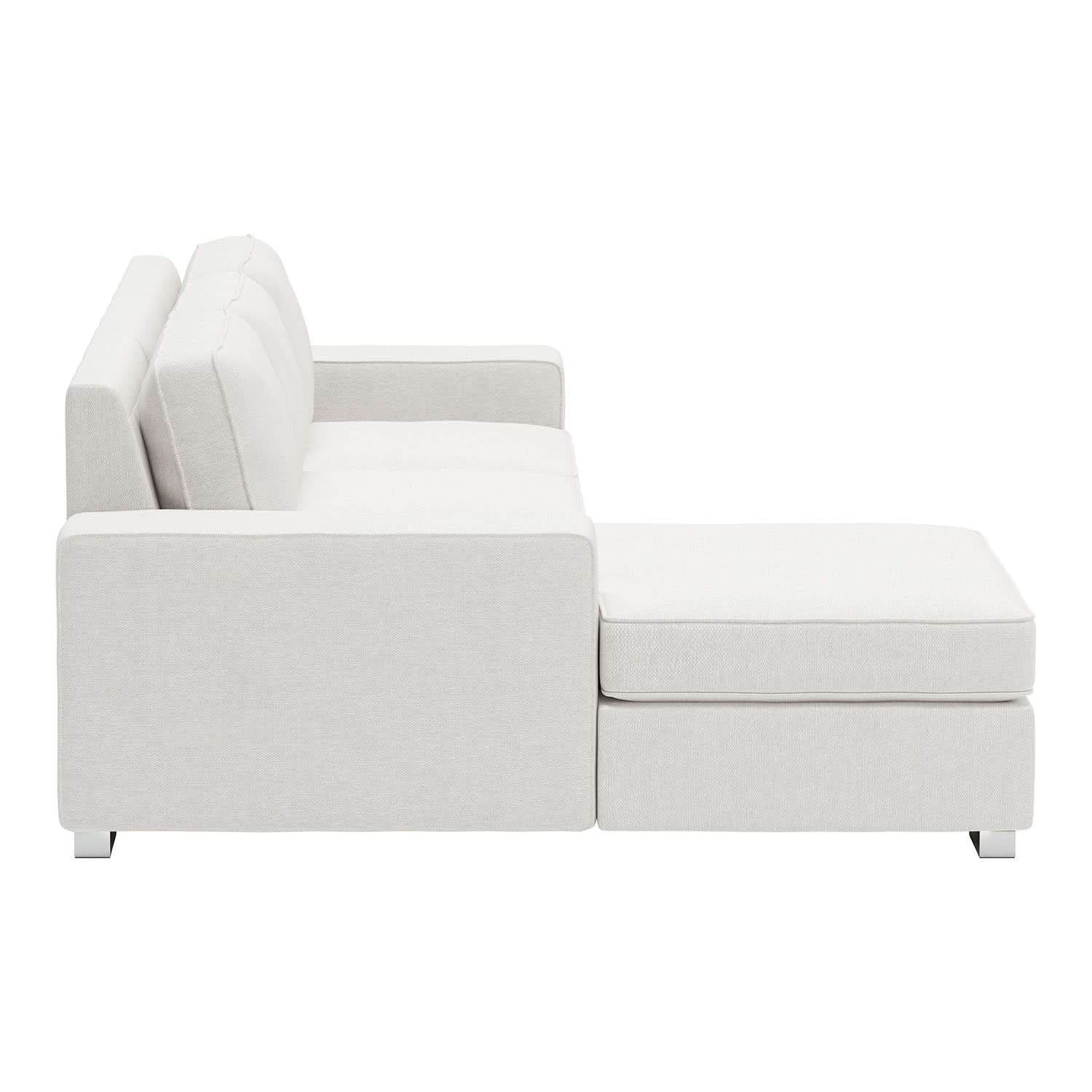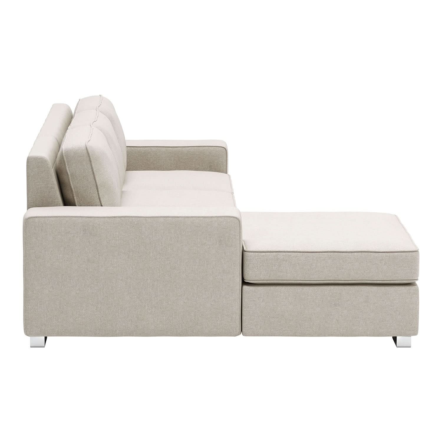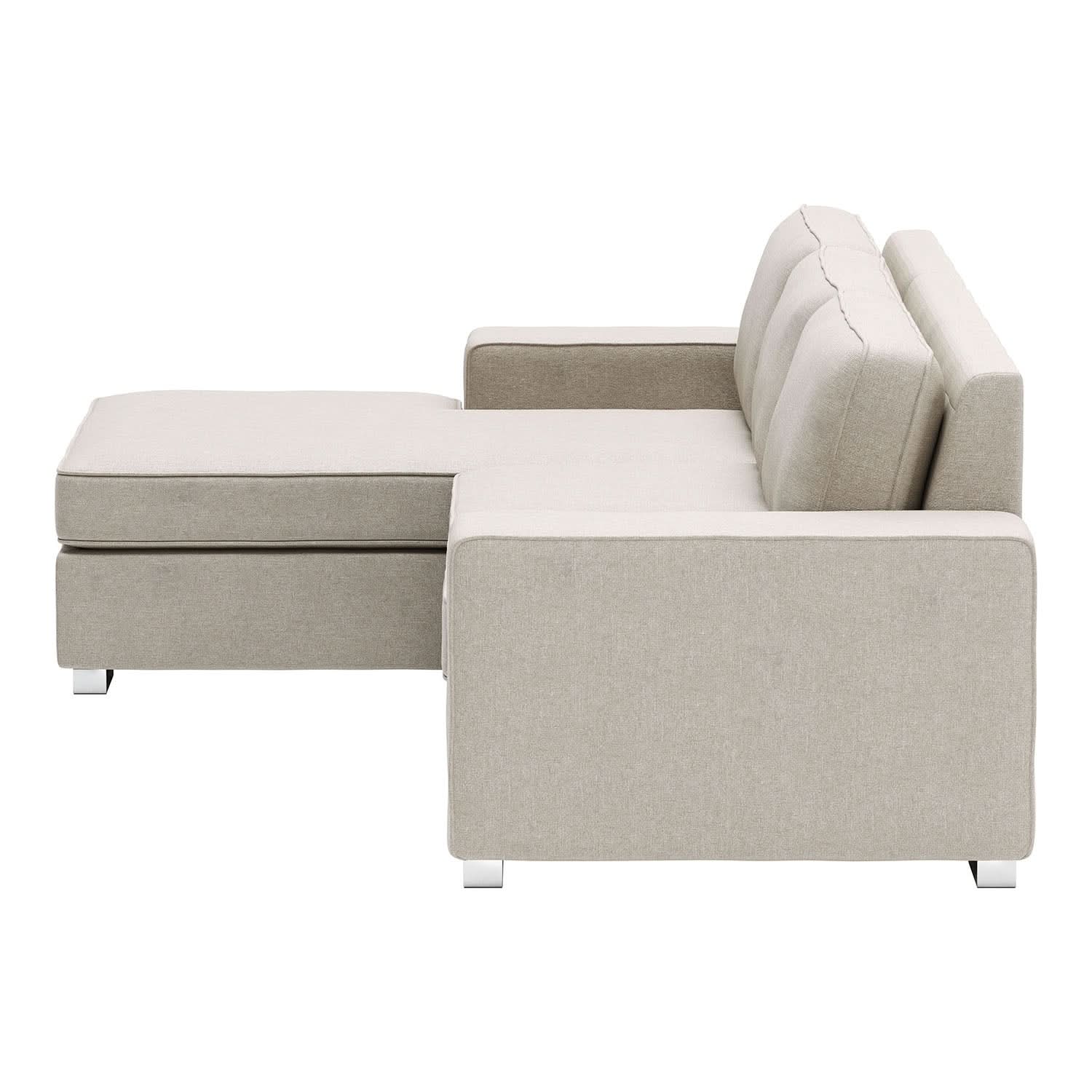 The Brickell Sectional is a stylish and spacious seating solution designed for modern living. Upholstered in soft, durable 100% polyester fabric and supported by a robust plywood frame with chromed steel legs, this sectional offers both comfort and contemporary flair. Perfect for large living areas, it provides ample seating with its extended chaise and sleek design.